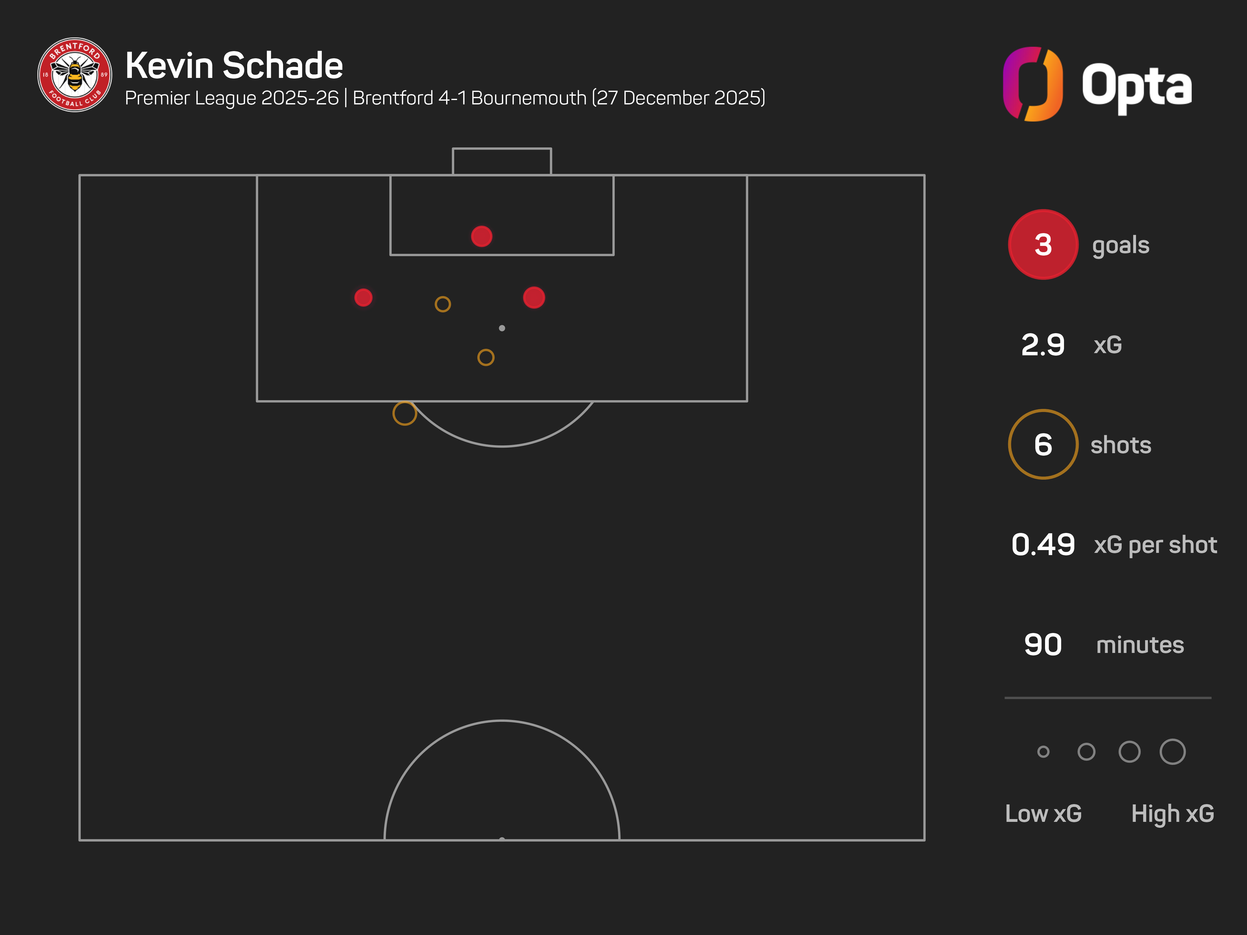 Schade scored a hat-trick in Brentford's 4-1 win over Bournemouth at the Gtech Community Stadium in December.