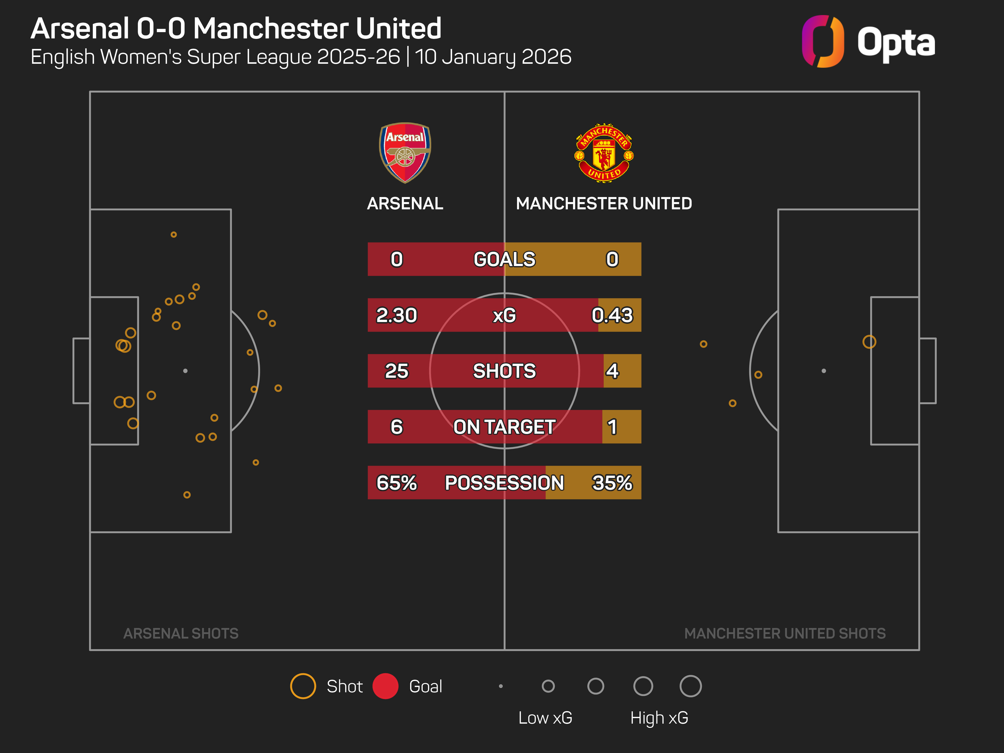 It was one-way traffic for much of Saturday's game, with Arsenal firing off 25 shots to United's four, with the Gunners also winning the expected goals (xG) battle by 2.3 to 0.43.