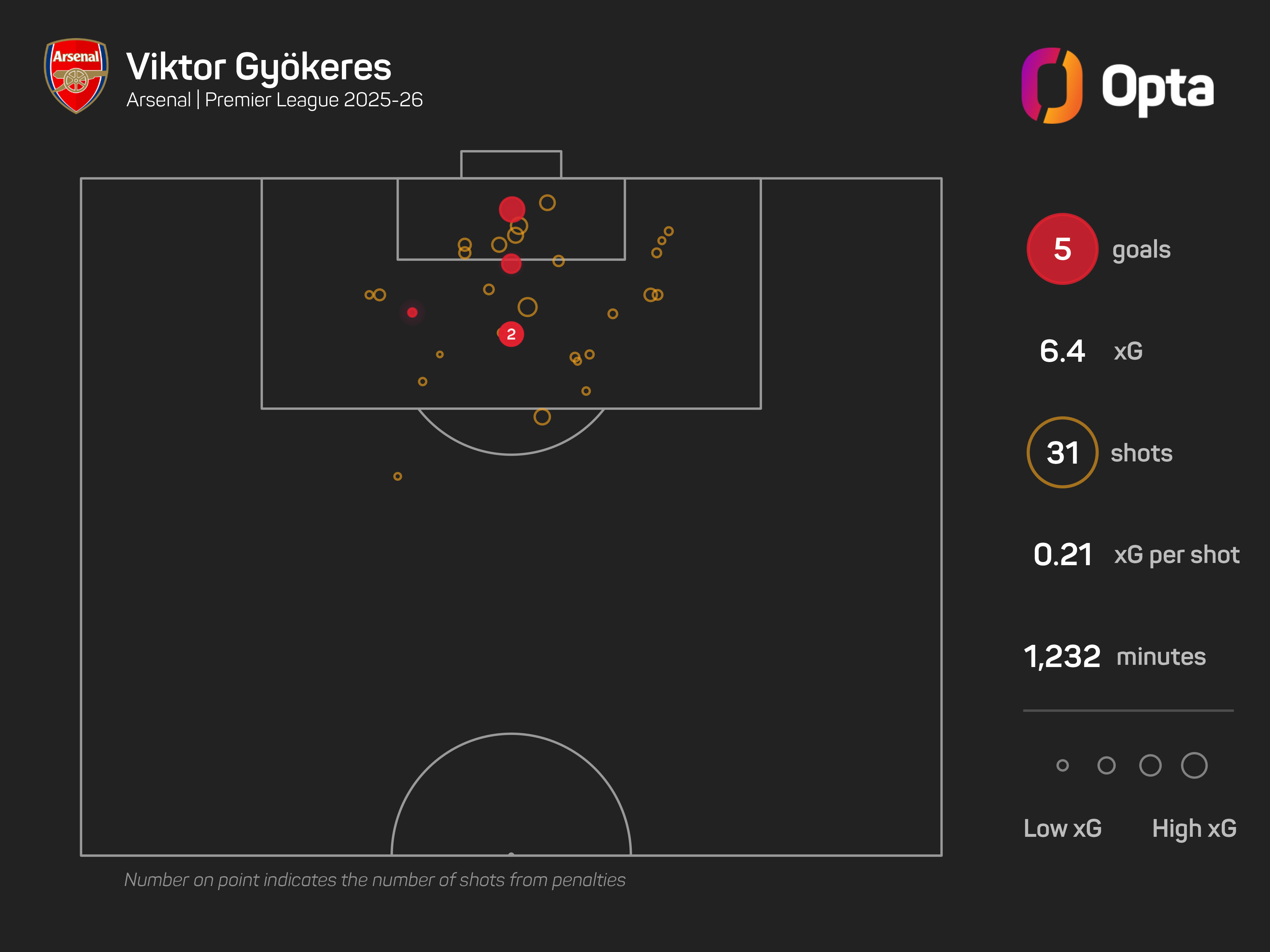 Rice scored twice, while Gyokeres has now gone nine matches without a goal from open play.