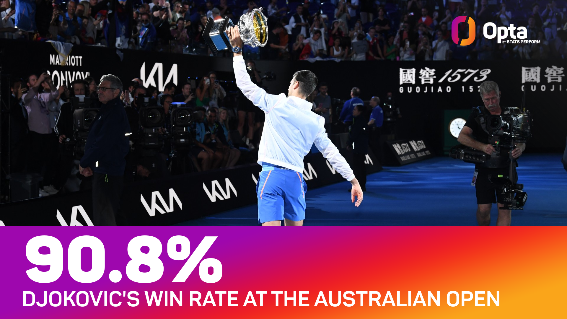 Djokovic also holds the best win ratio at the event in the Open Era (90.8%, 99-10, minimum 20 matches) and could become only the second player to reach a century of victories at Melbourne Park, after Roger Federer (102).