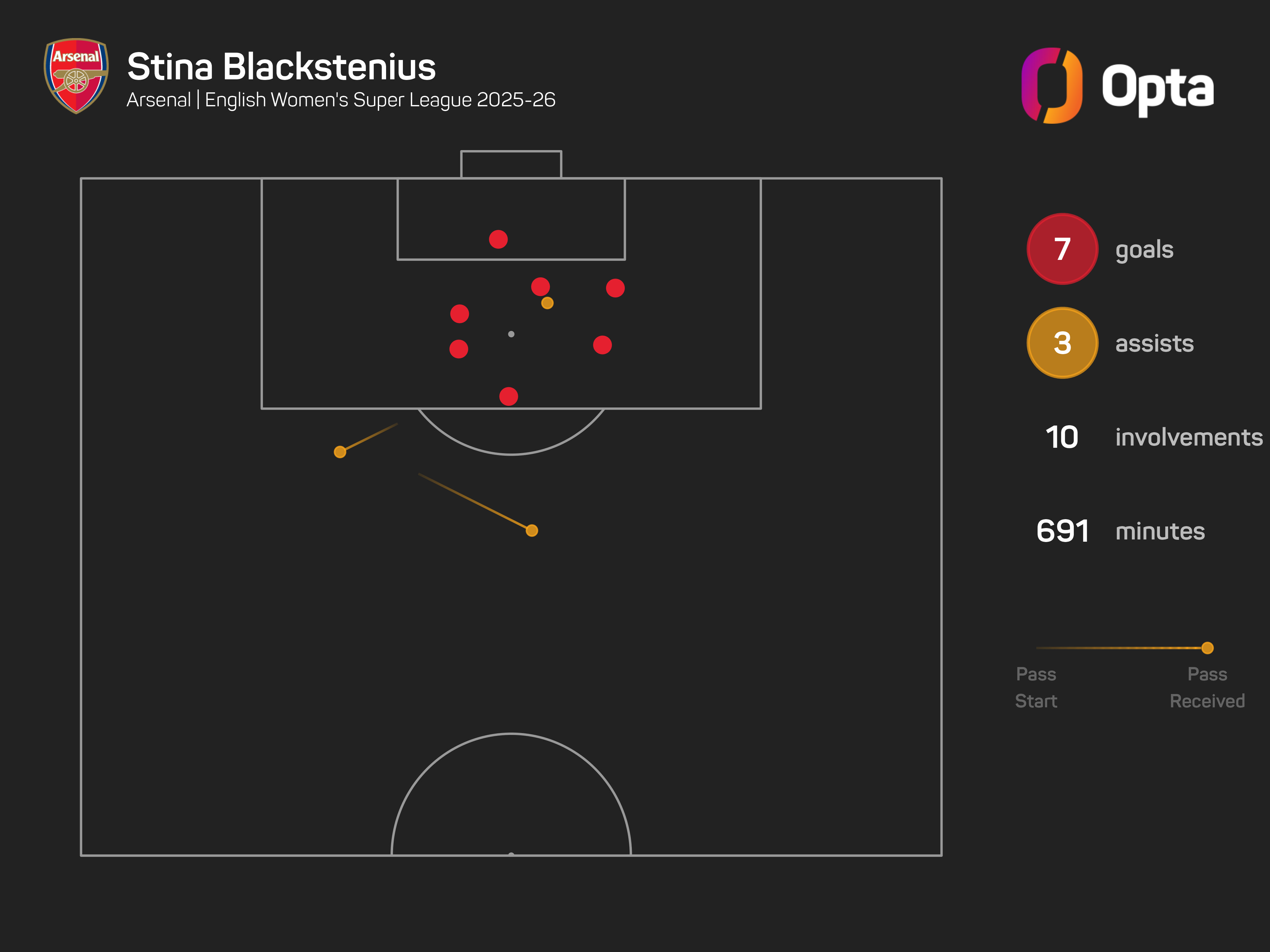 The Swede is Arsenal's second-highest goalscorer in the Women's Super League this term, netting seven goals despite starting just six games.