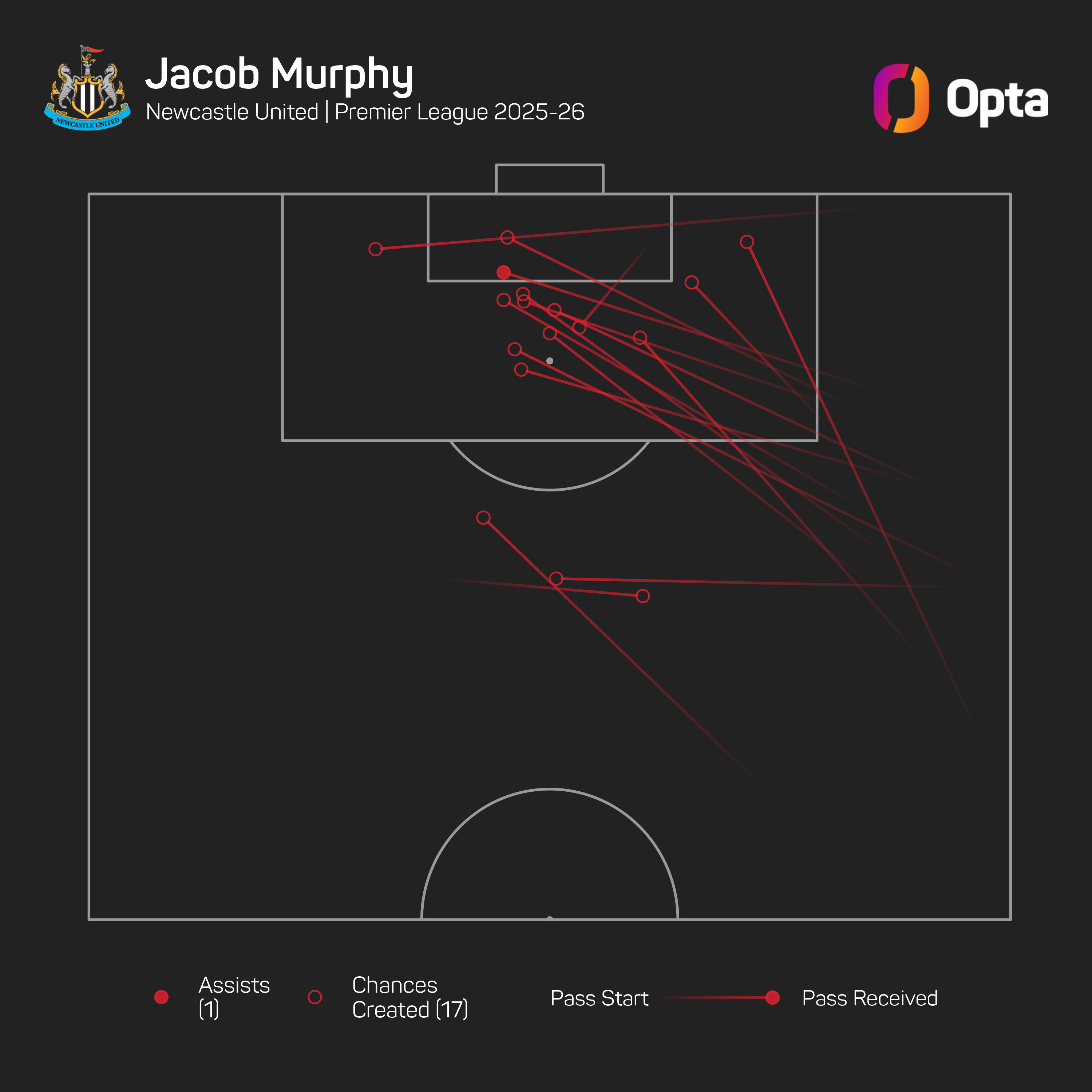 While he only has one Premier League assist in 2025-26, Murphy has racked up 2.24 expected assists (xA).