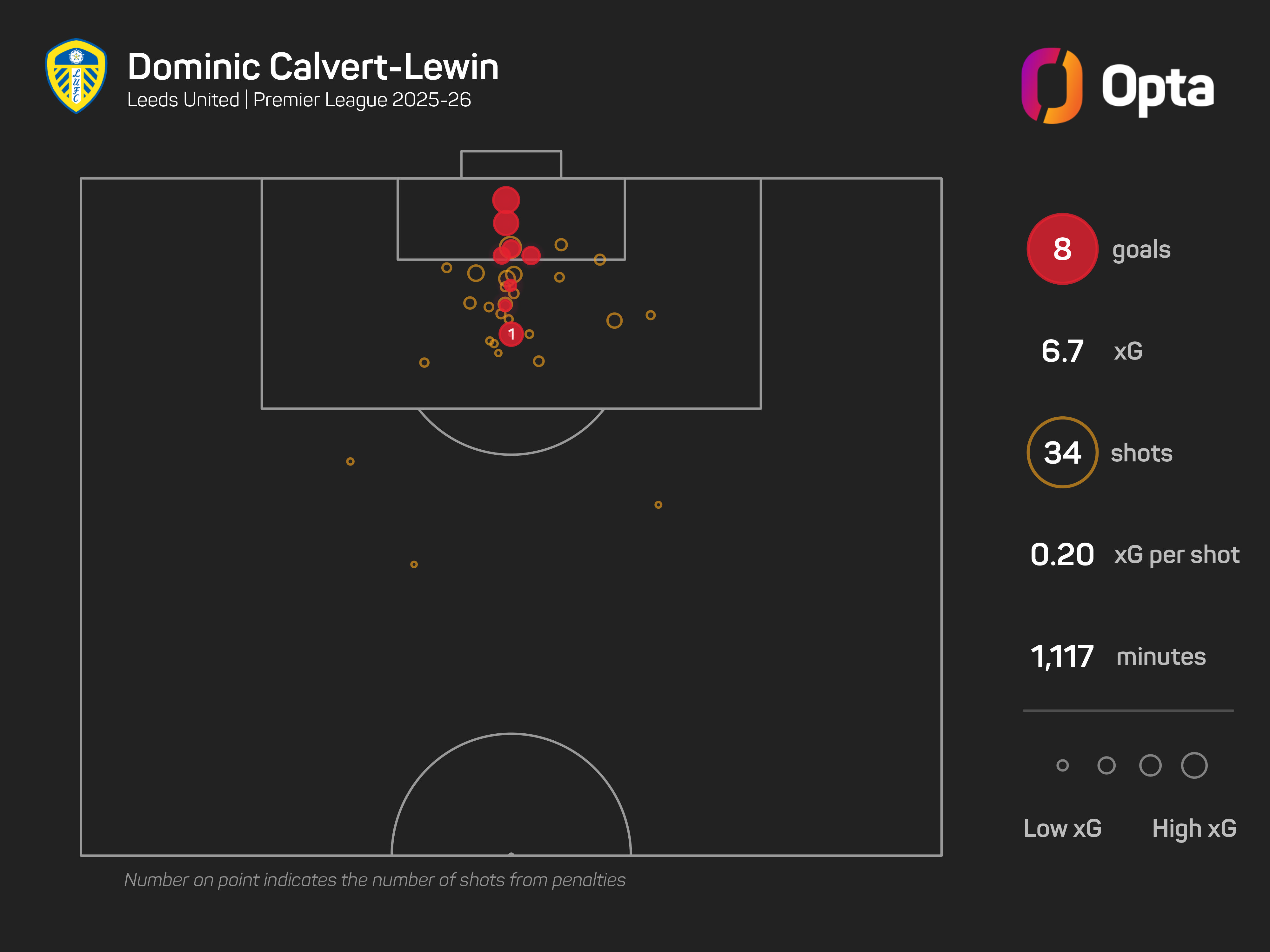 Calvert-Lewin already has more than twice as many Premier League goals this season (eight) as he managed in his final campaign with Everton (three in 2024-25).