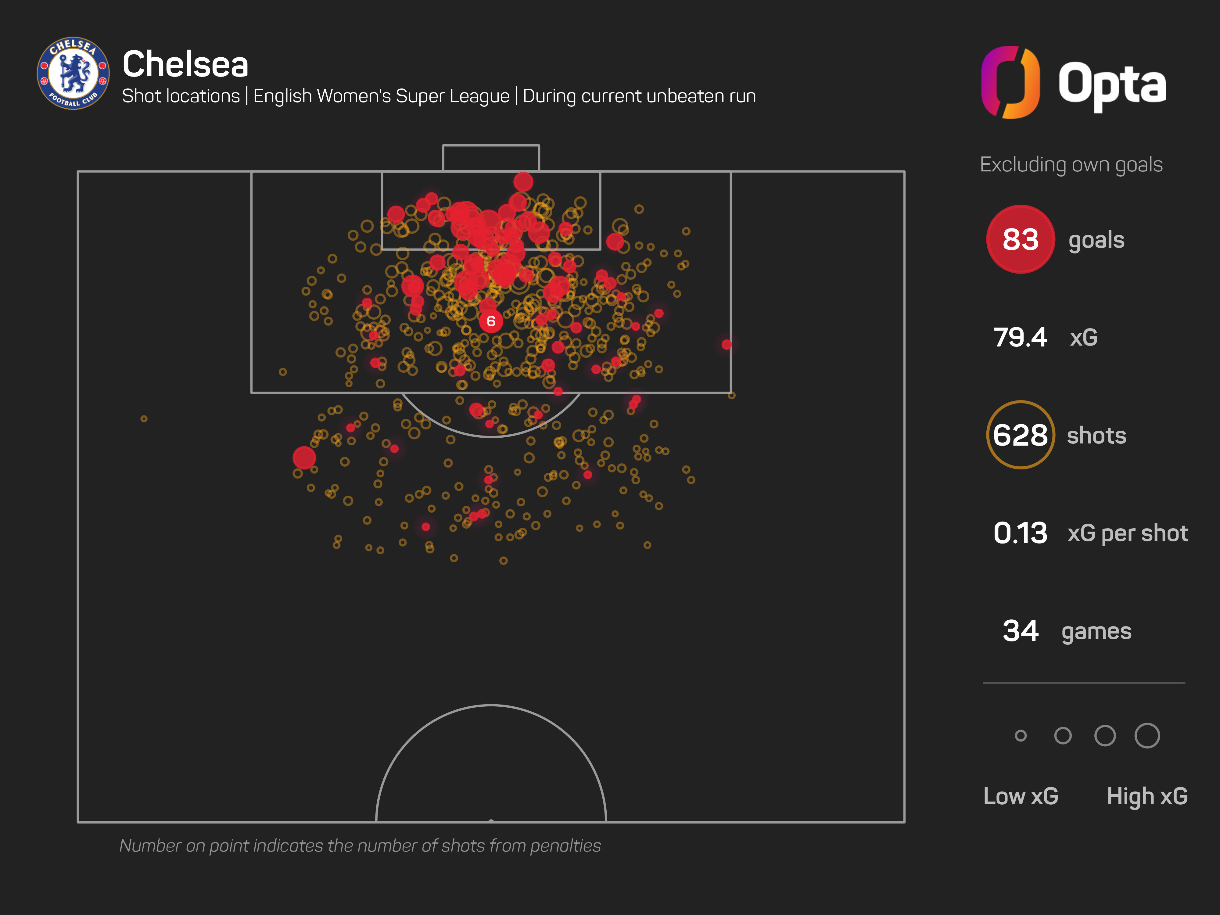 Here, using Opta data, we break down the six-time WSL champions' unprecedented streak.