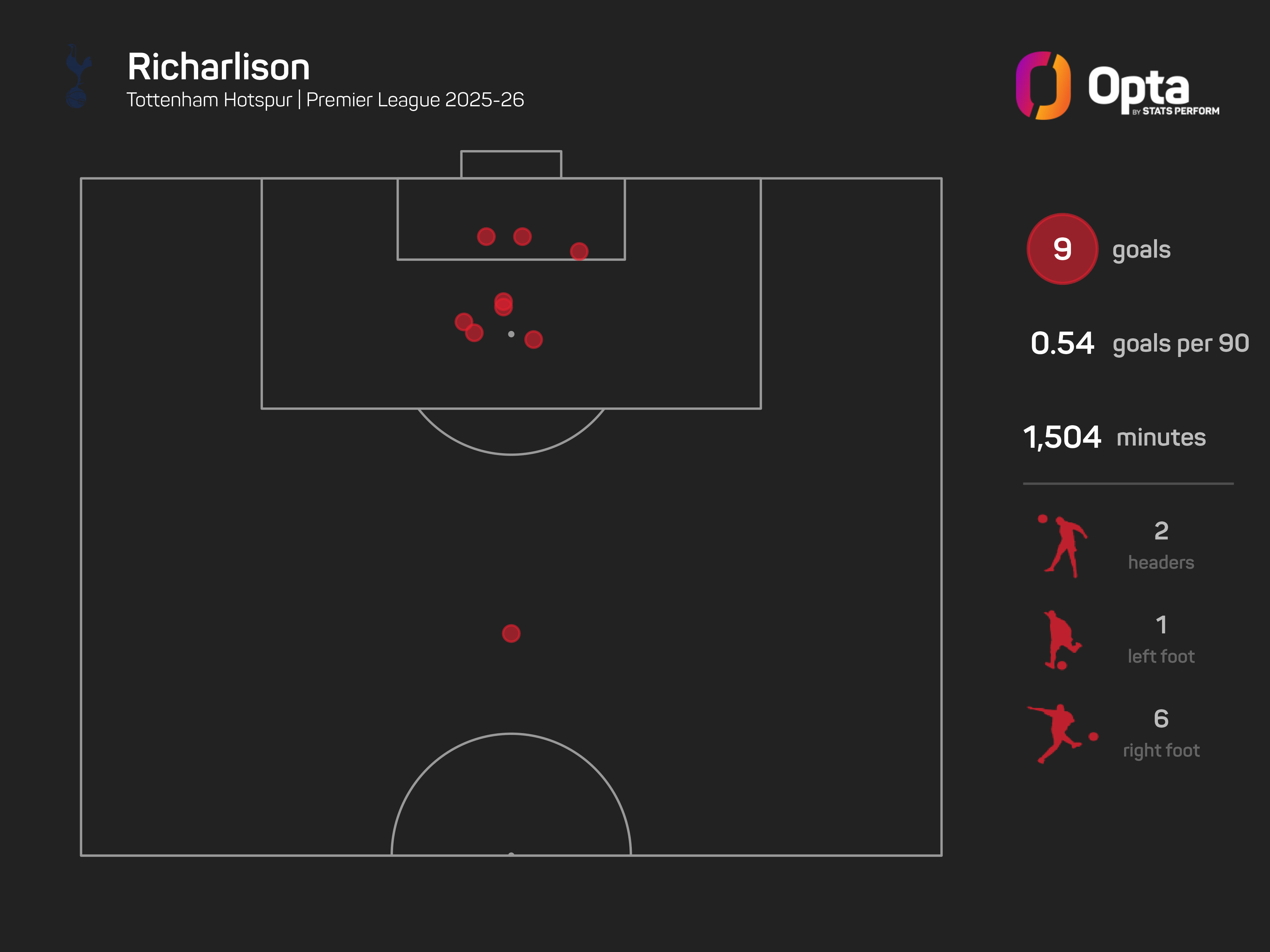 Richarlison has scored nine Premier League goals this season and could hit double figures for the fifth time in the competition, after 2018-19 (13), 2019-20 (13), 2021-22 (10), and 2023-24 (11).