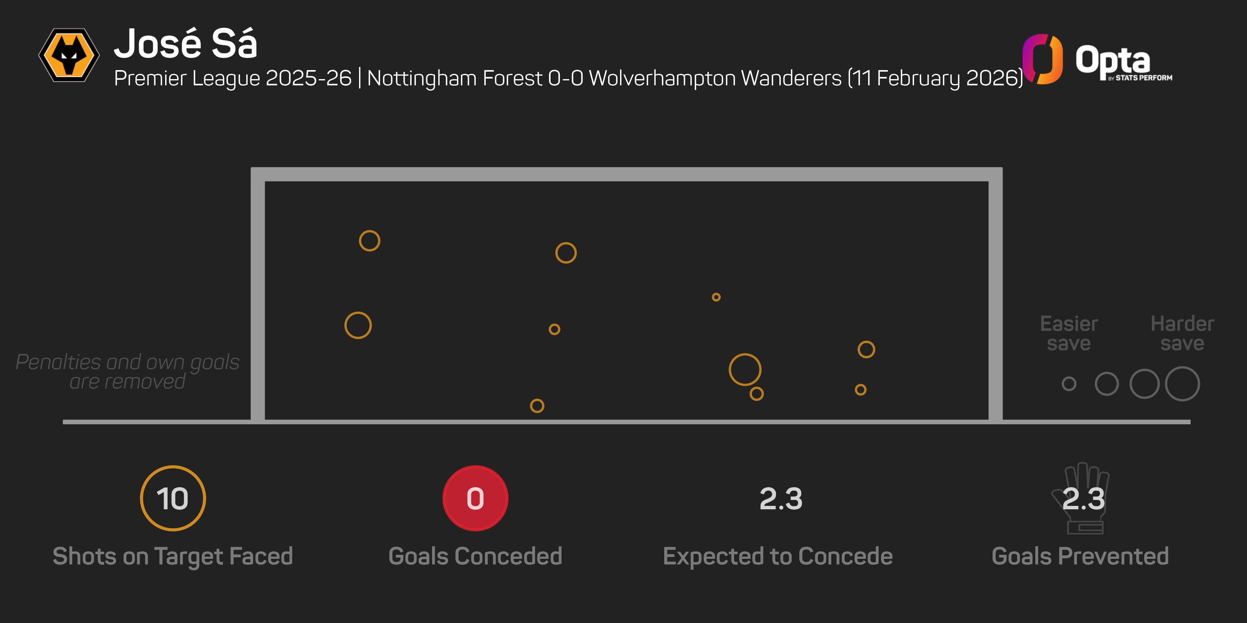 The only previous instances were Paul Jones vs Middlesbrough in 2004 (10), Wayne Hennessey vs Liverpool in 2012 (10) and Sa himself vs Liverpool in 2024 (11).