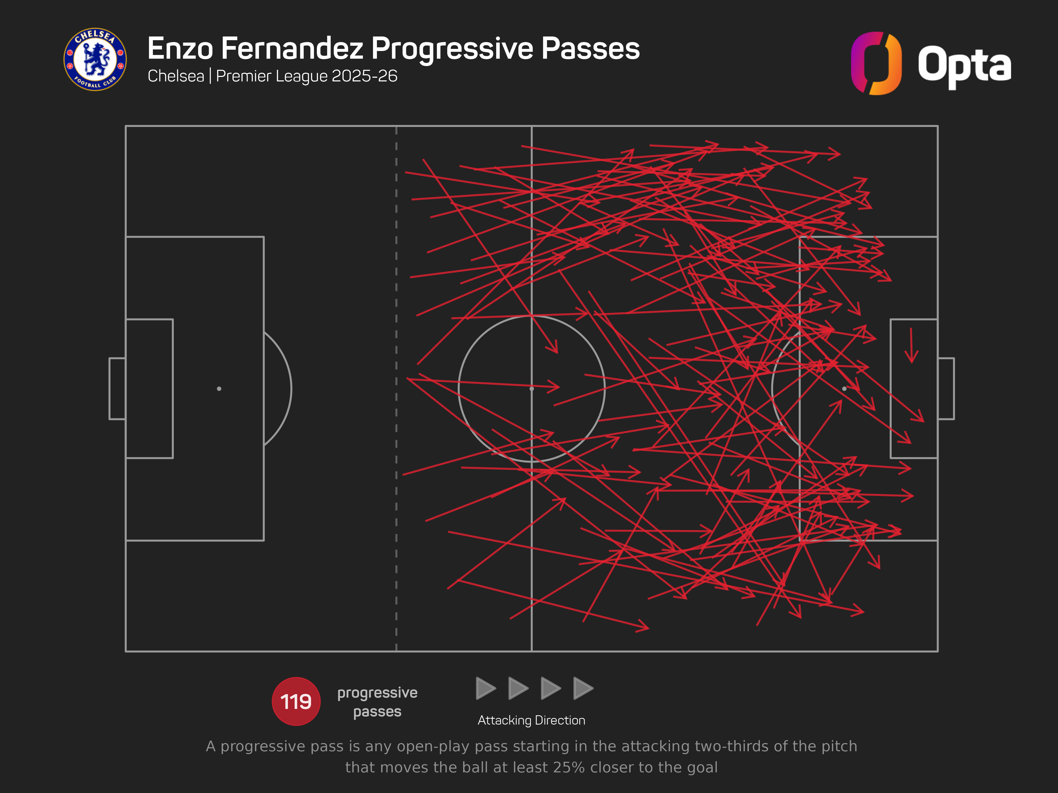 The Argentine's usual midfield partner Caicedo has been involved in 78 build-up attacks resulting in a shot in the Premier League this term, the most of any player for the Blues.