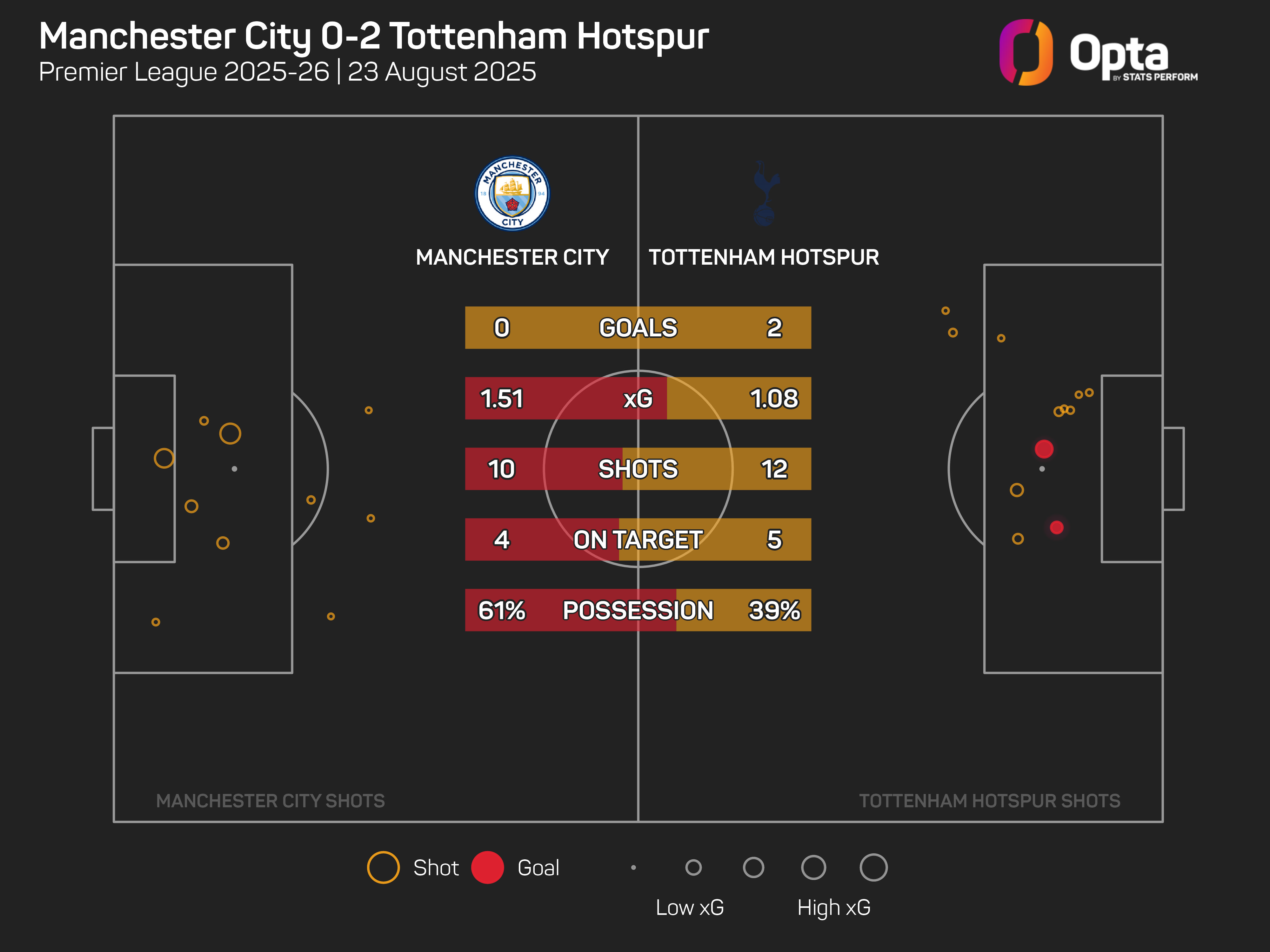 And Frank's side were worthy of their win, despite ending the game with an expected goals (xG) total of 1.02 from their 12 shots to City's 1.51 from their 10 attempts.