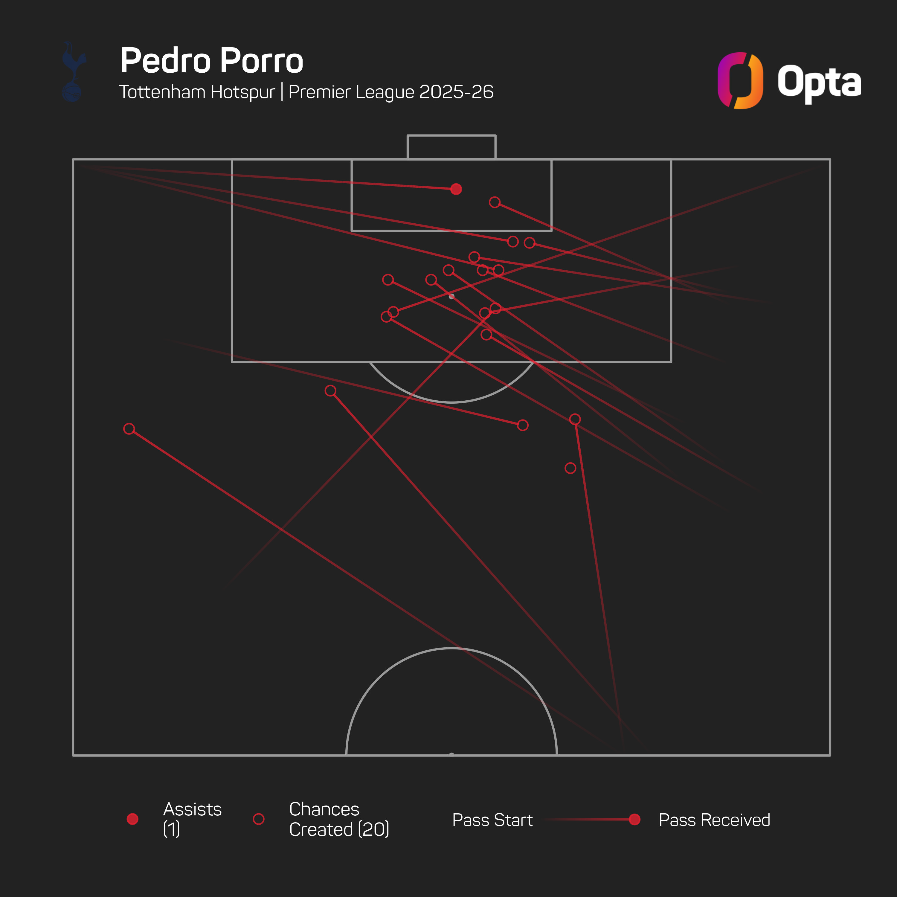 Meanwhile, only Mohammed Kudus (22) has created more chances for them than Porro (20) this term.