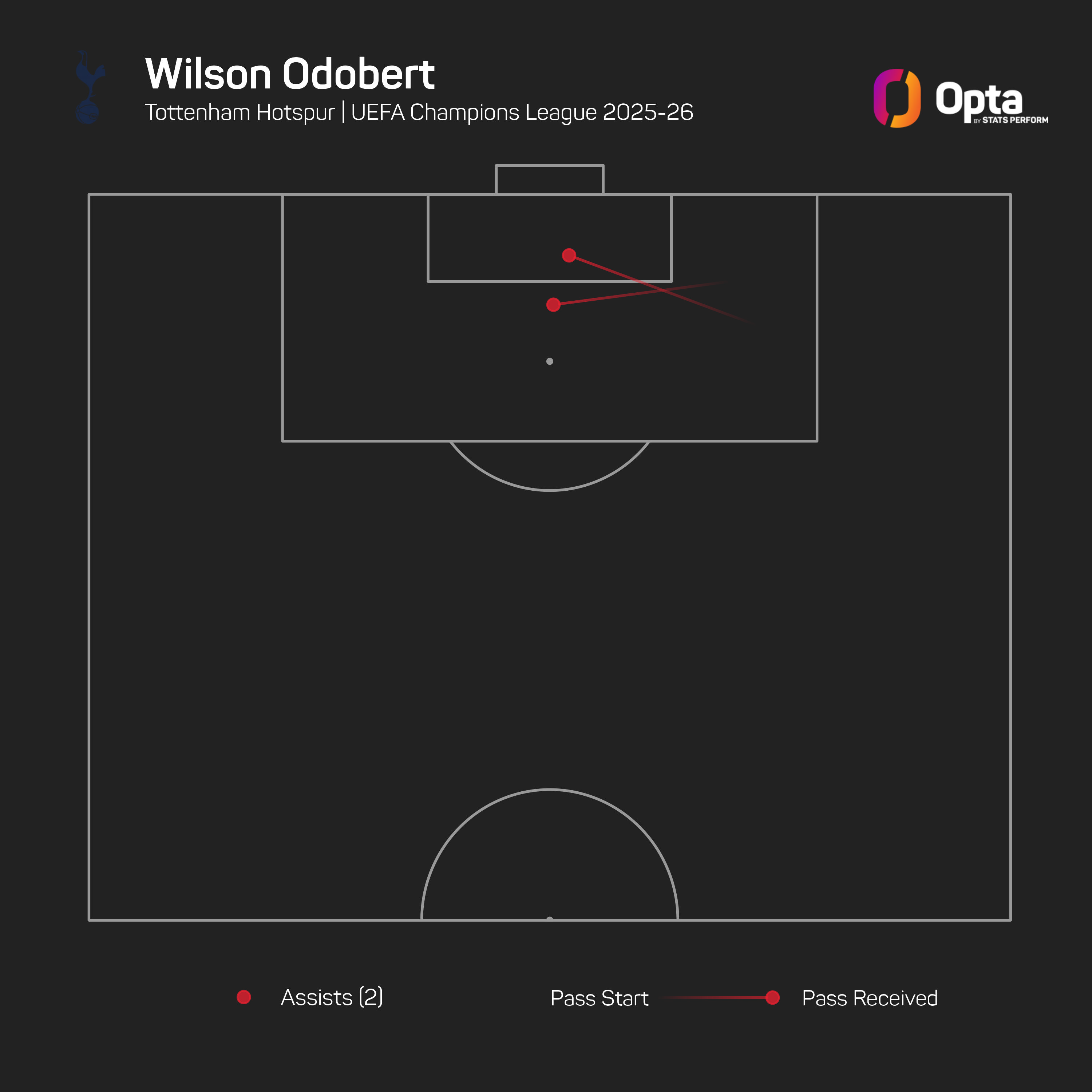 Against Dortmund, Odobert became the first Spurs player to assist two goals in a Champions League game since Erik Lamela and Tanguy Ndombele both did so versus Red Star Belgrade in October 2022.
