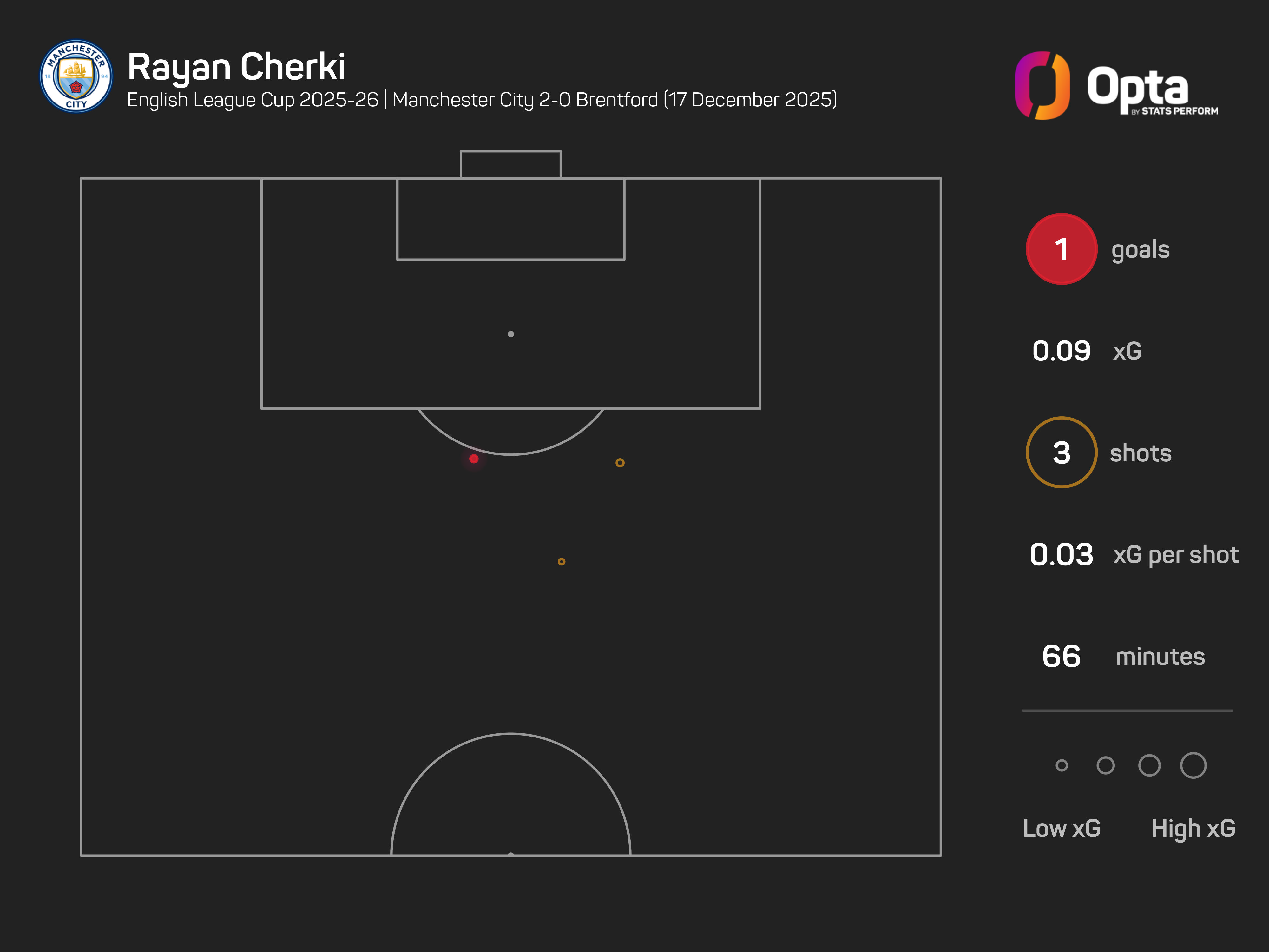 Against Brentford, only Savinho had more shots (four to three) and attempted more dribbles (12 to three) than Cherki, though Guardiola was keen to applaud the latter's display.