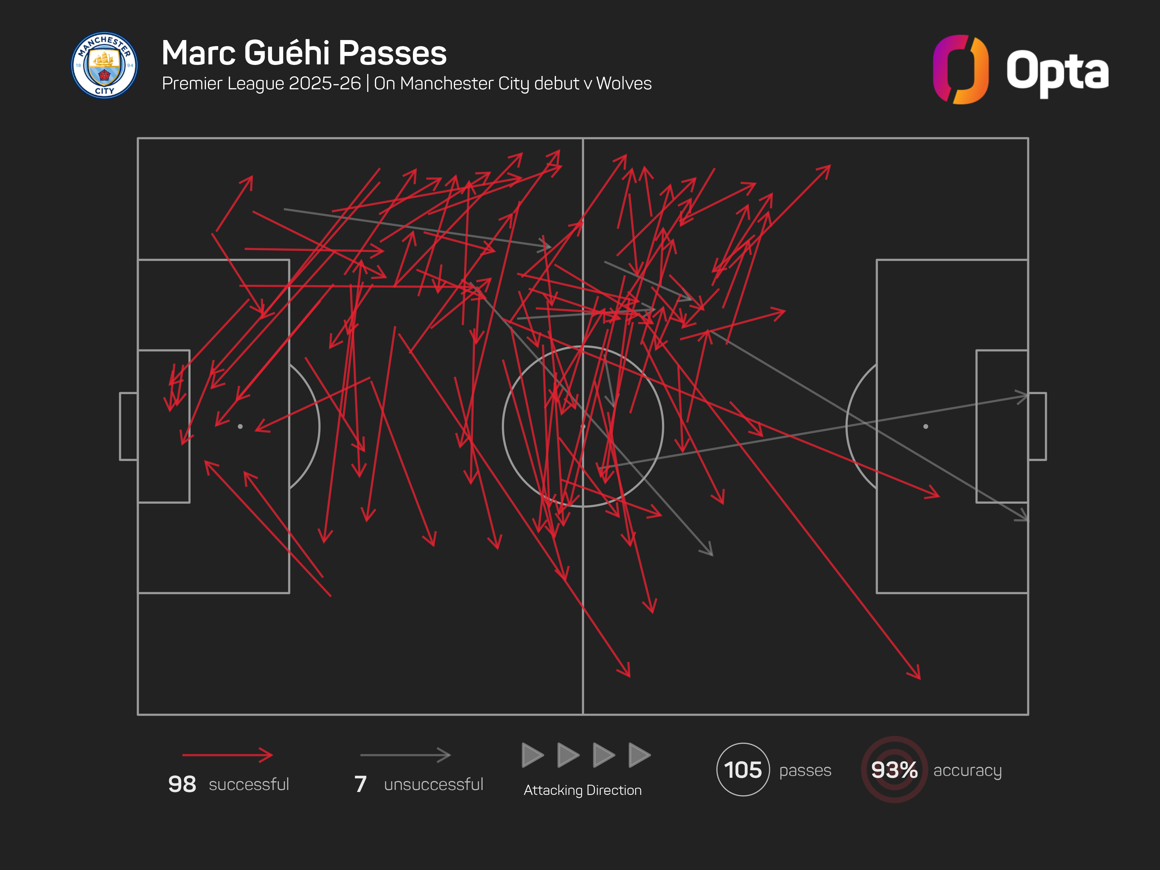 The defender made a solid first appearance for City, with the most attempted (105) and accurate (98) passes of anyone in the team, while only Rodri (117) bettered his 115 touches.