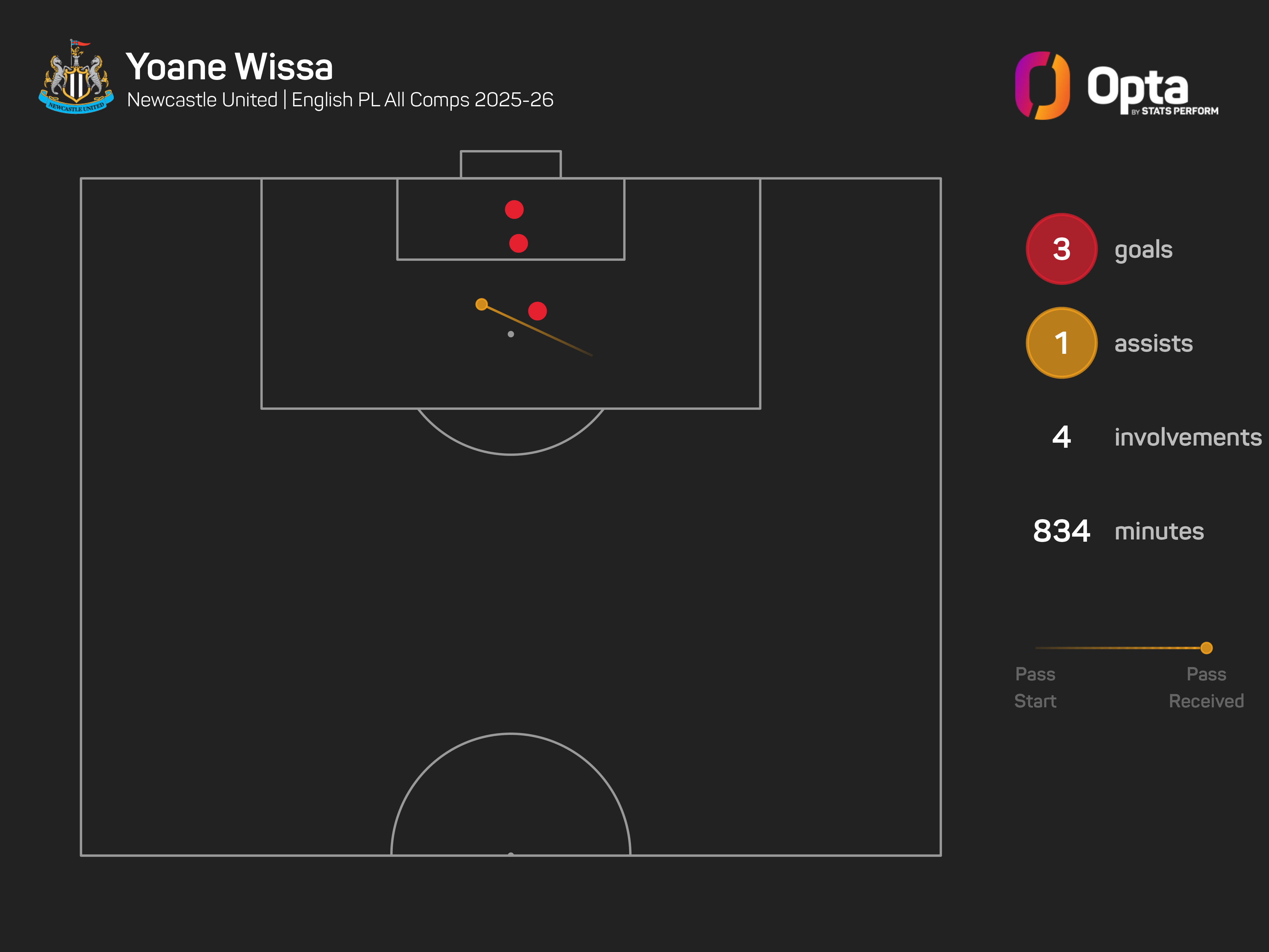 Wissa did not make his debut for the club until December against Burnley, though of his outings for the Magpies this season, only eight have been from the start.