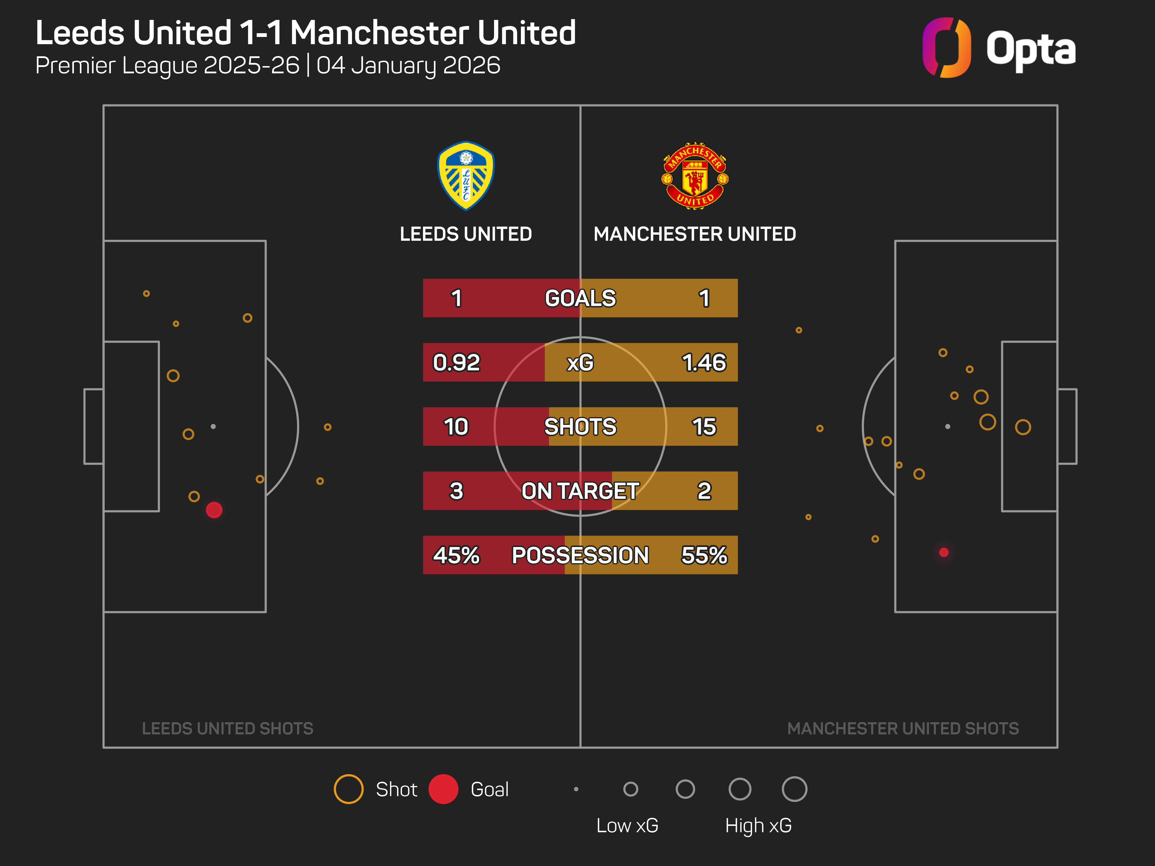 United had 15 shots against Leeds, but only hit the target with two of those, with Cunha also having a first-half goal disallowed and rattling the post with a late chance for a winner.