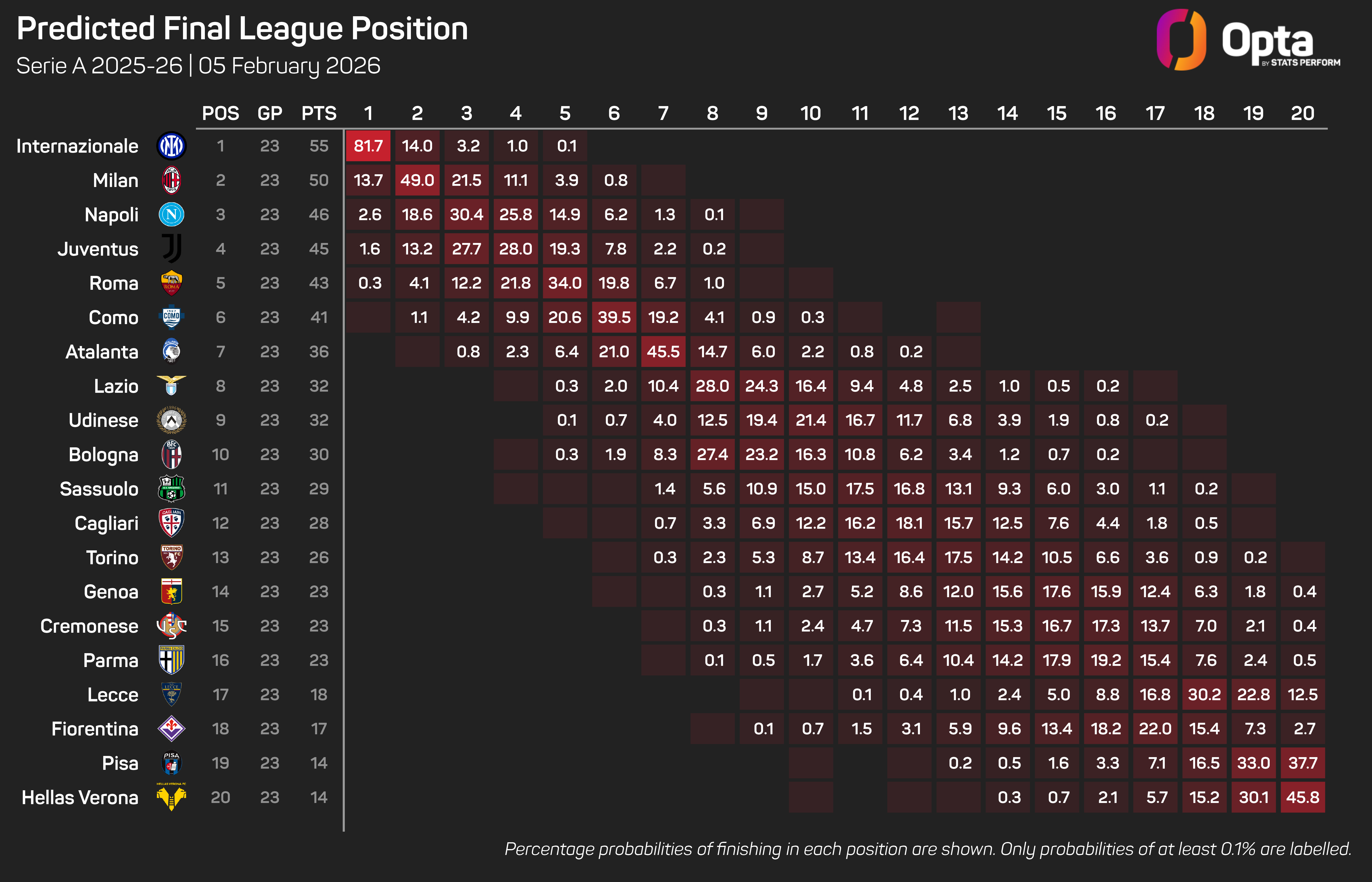 In his first full season in charge, Fabregas guided Como to 10th, while in 2025-26, his team sit sixth and are within just four points of the Champions League places.