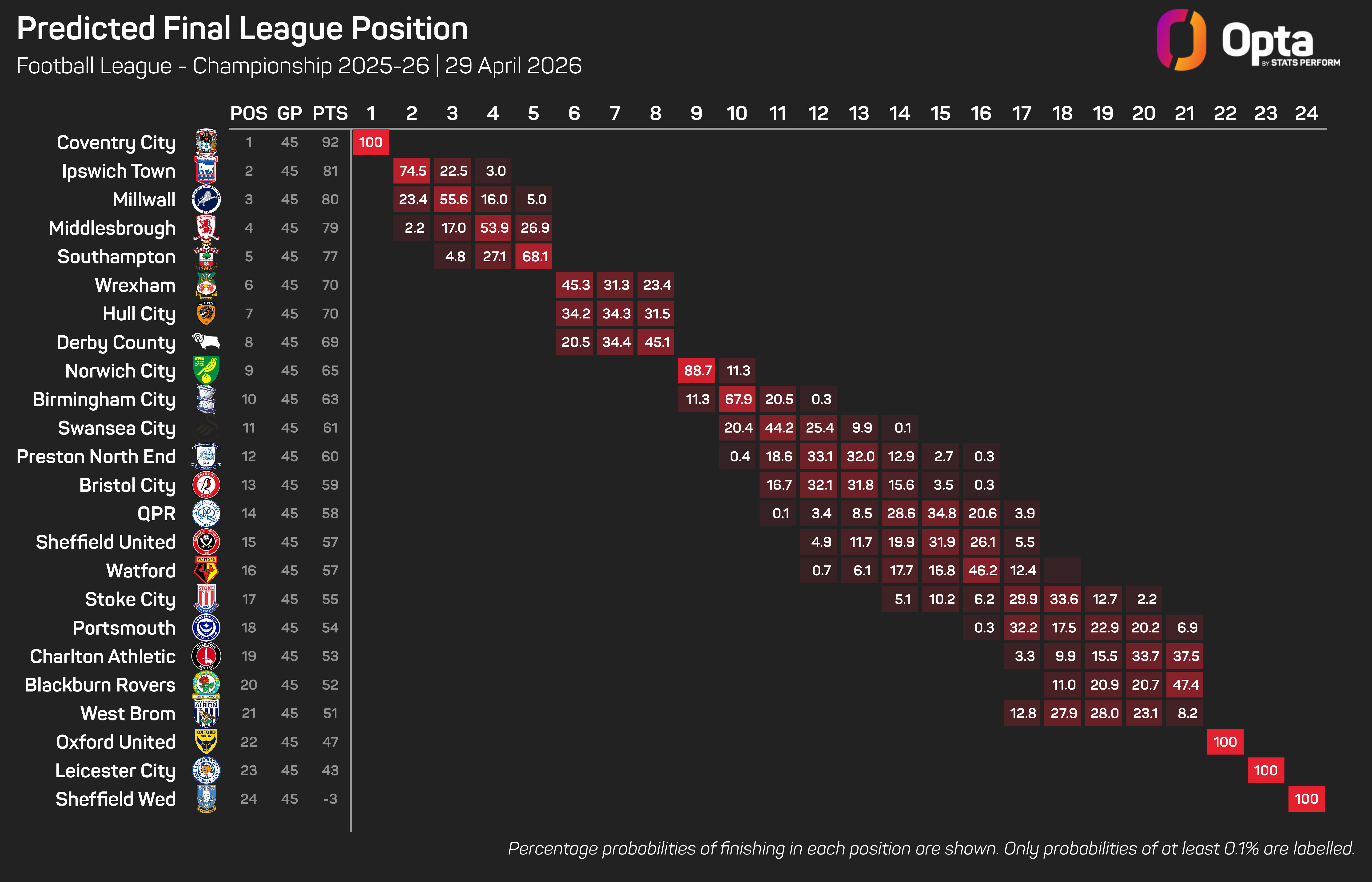 Ipswich, Millwall and Middlesbrough are now assured at the very least a spot in the top six, though one will be automatically promoted on the final day, with Wrexham, Hull City and Derby County left to battle it out for the final play-off place.