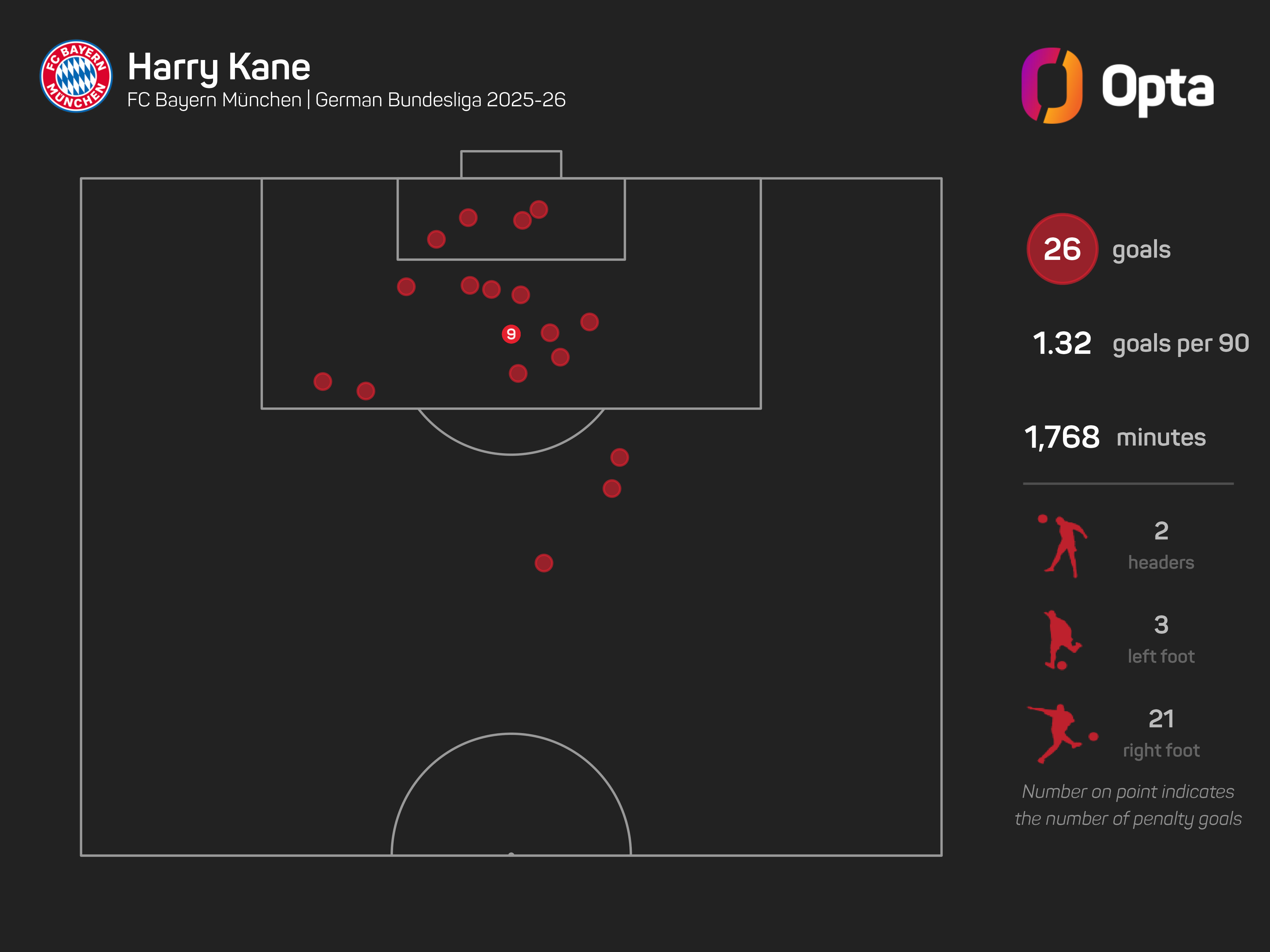 Kane has netted 88 goals for Bayern since he joined ahead of the 2023-24 campaign, recording some of his most prolific seasons.