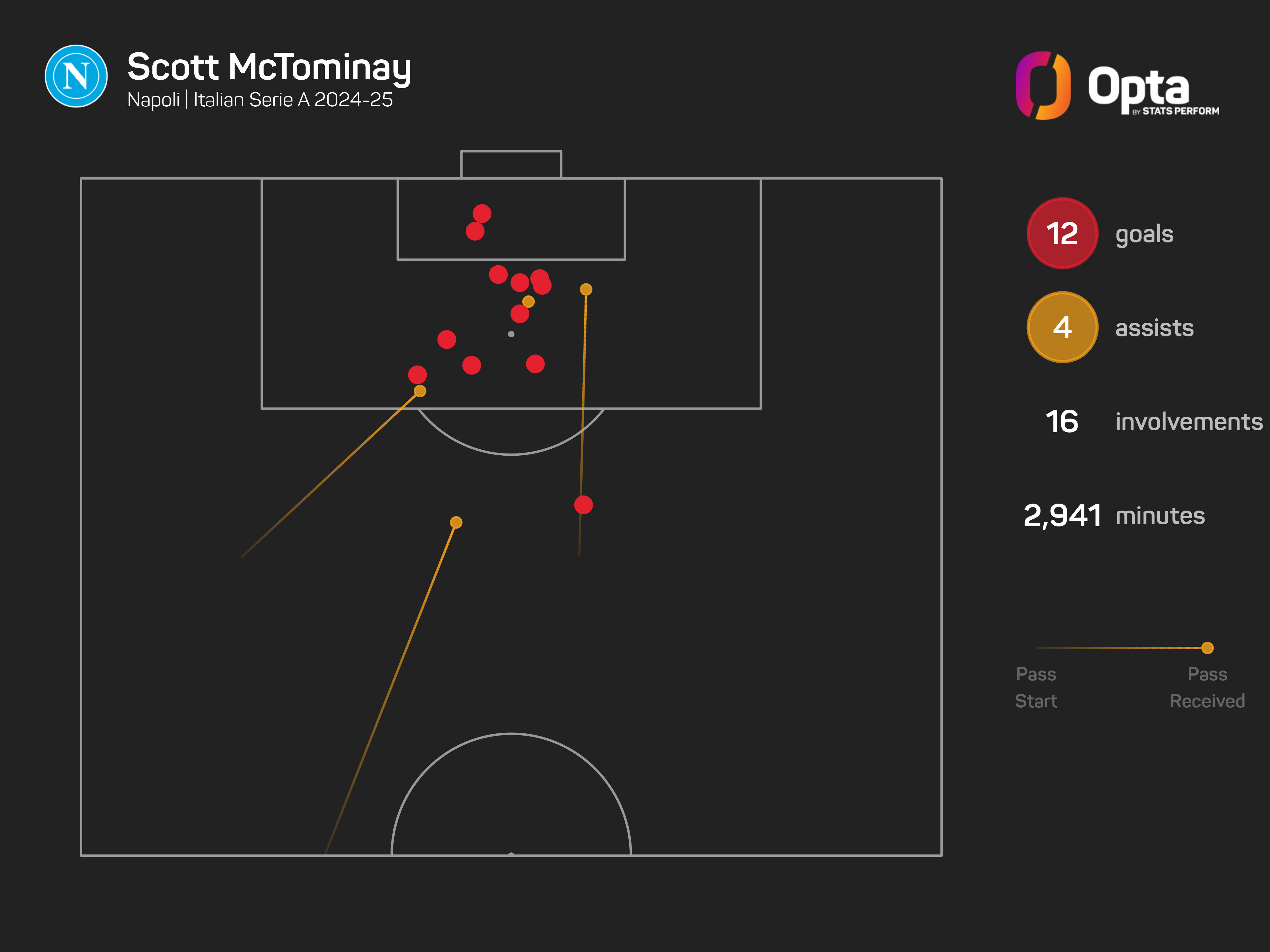And McTominay has taken the Italian top-flight by storm, registering 16 goal involvements (12 goals, four assists) in 34 appearances in his debut season under Antonio Conte.