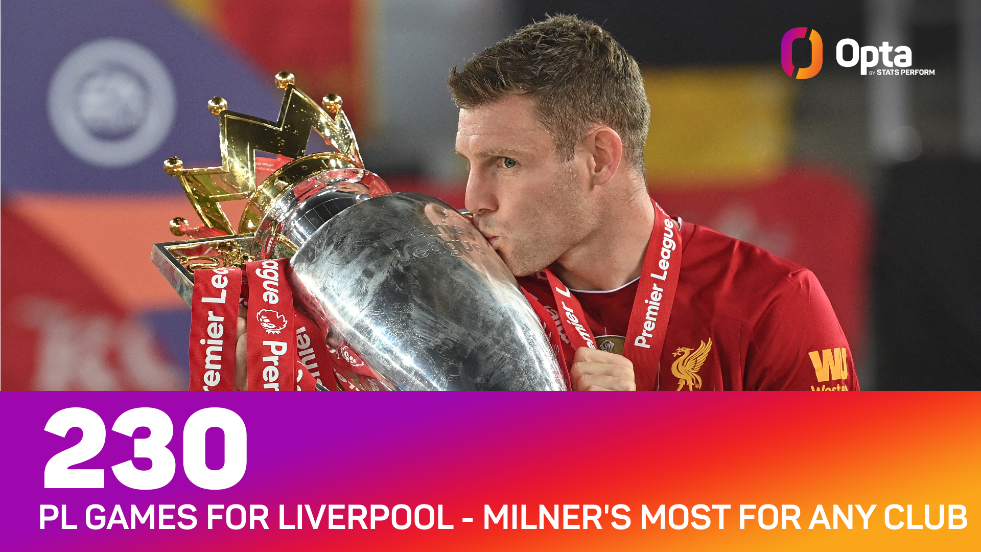 Milner appeared 22 times and played a total of 926 minutes during Liverpool's 2019-20 title-winning campaign, scoring both his goals against Leicester City, including a 95th-minute winner in the home fixture.