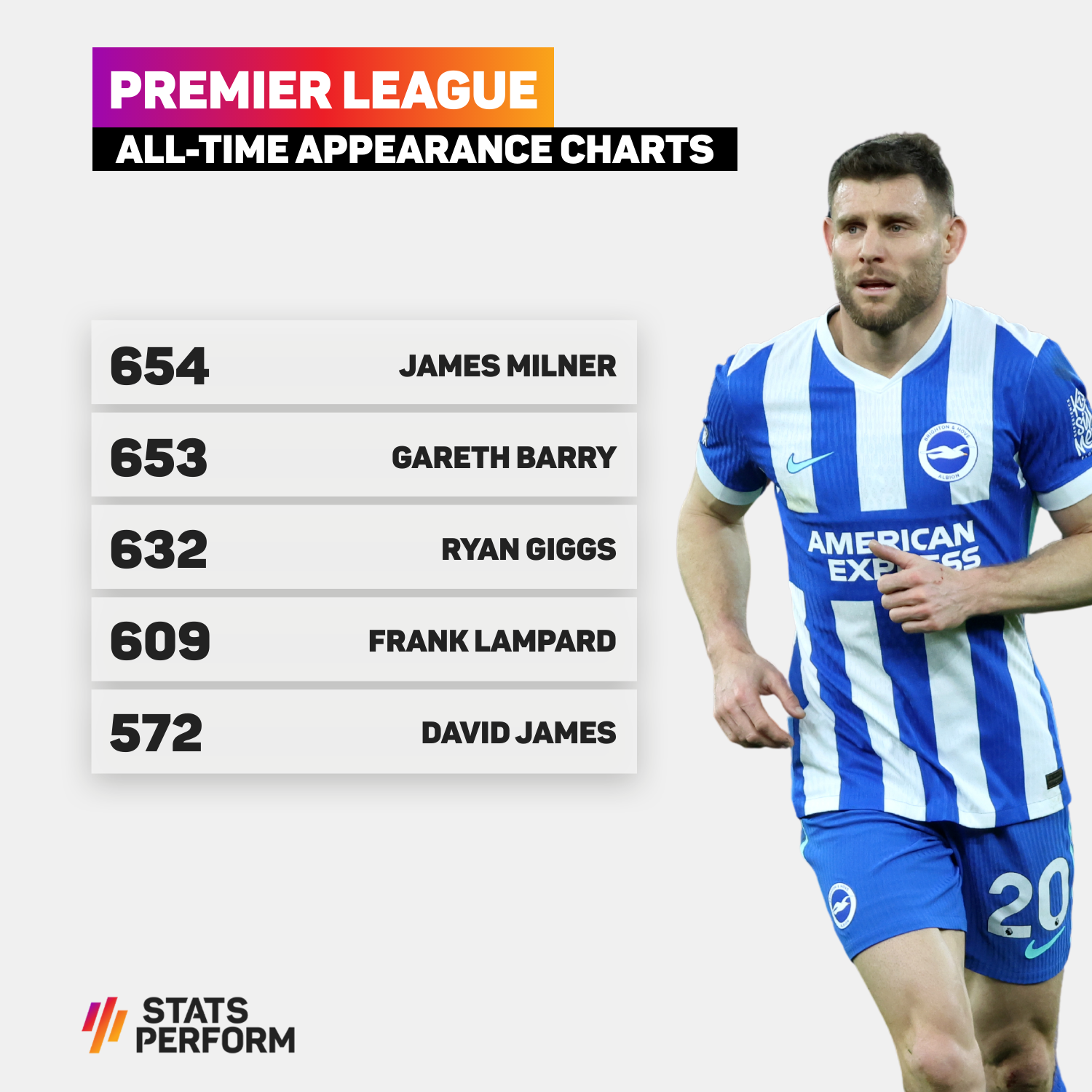Milner played his 654th game in the competition on Saturday, starting for Brighton against Brentford and being withdrawn in the final minute of the 90 as the Seagulls won 2-0.
