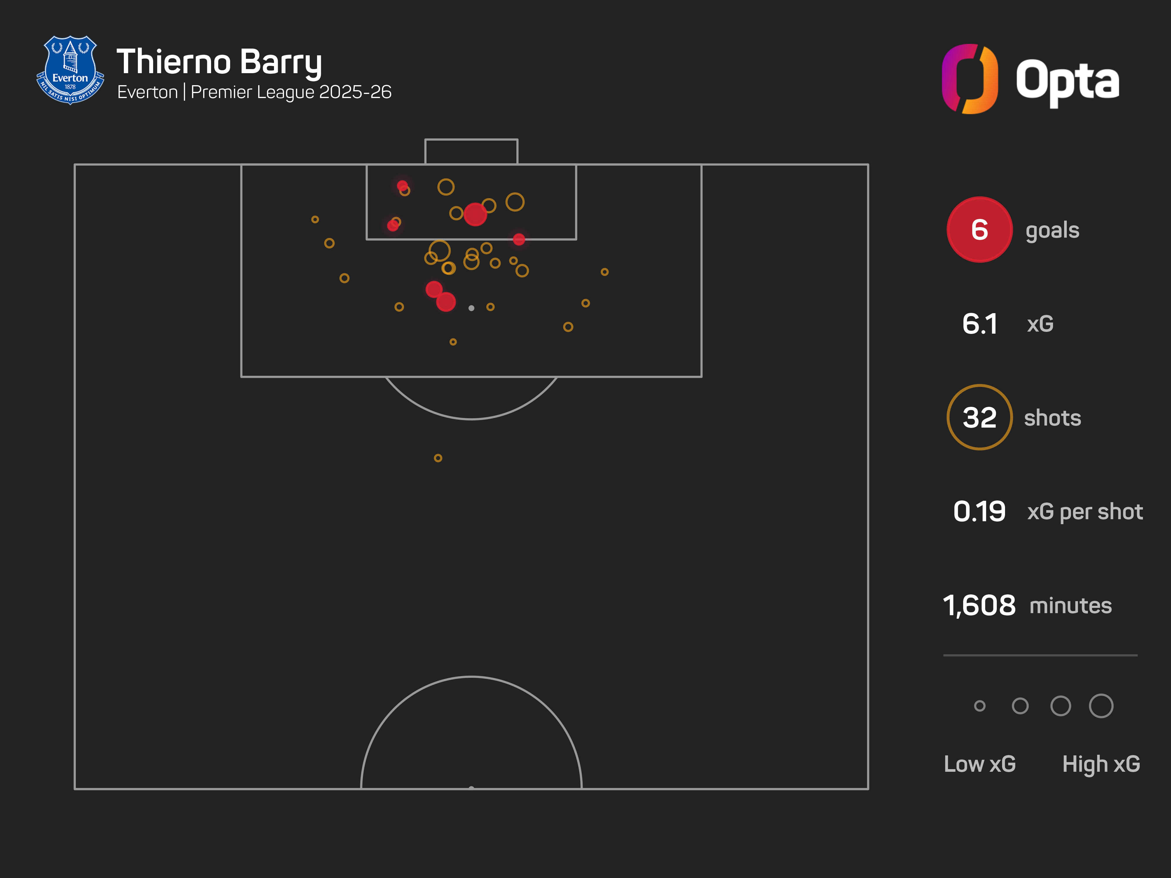 After scoring in none of his first 14 Premier League appearances for Everton, Barry has now scored six in his last 14.