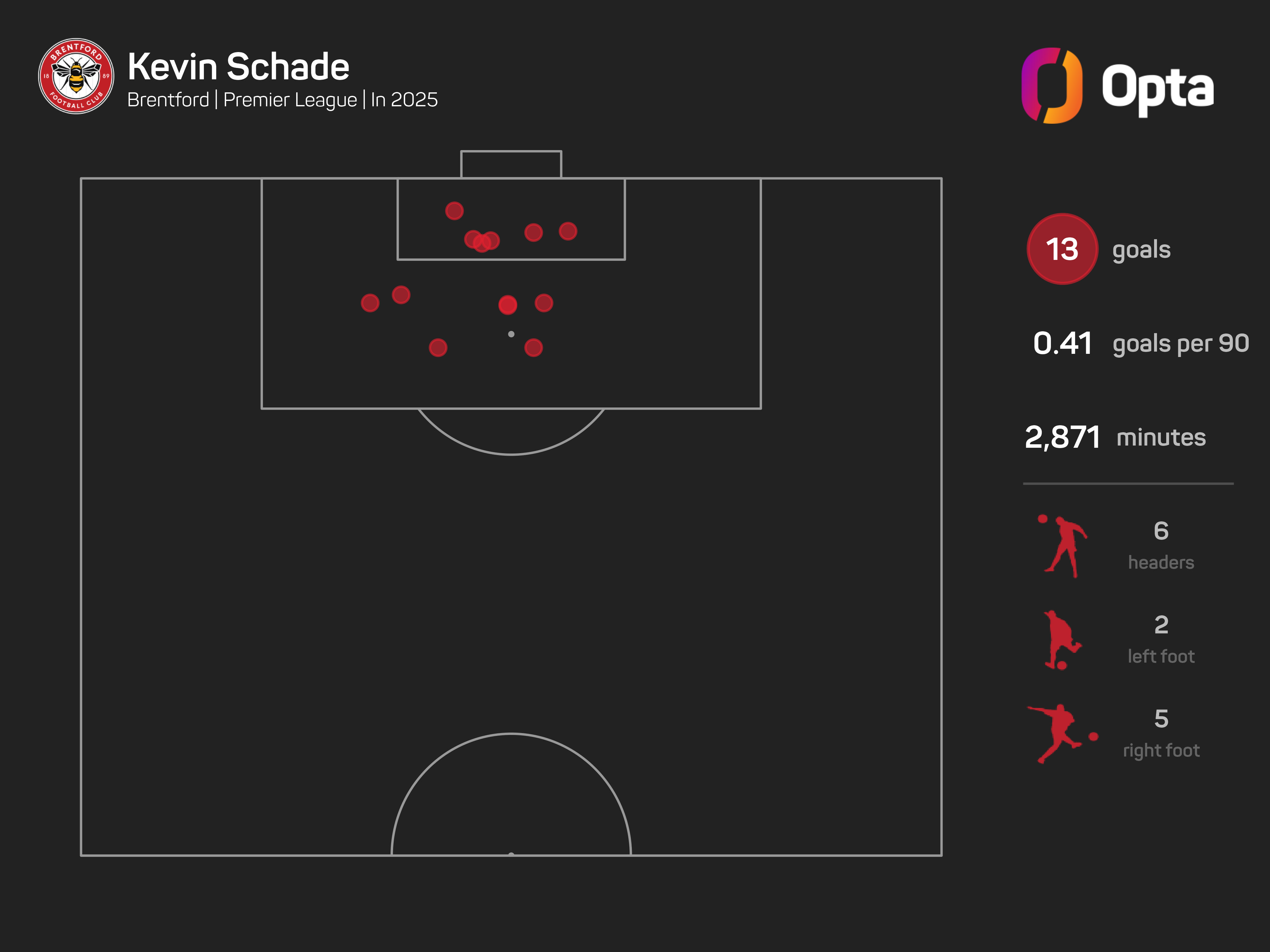 Schade has also scored more Premier League goals in 2025 than any other Brentford player (13), while seven of his goals this year have put them ahead in games, and six of them have been winning goals.