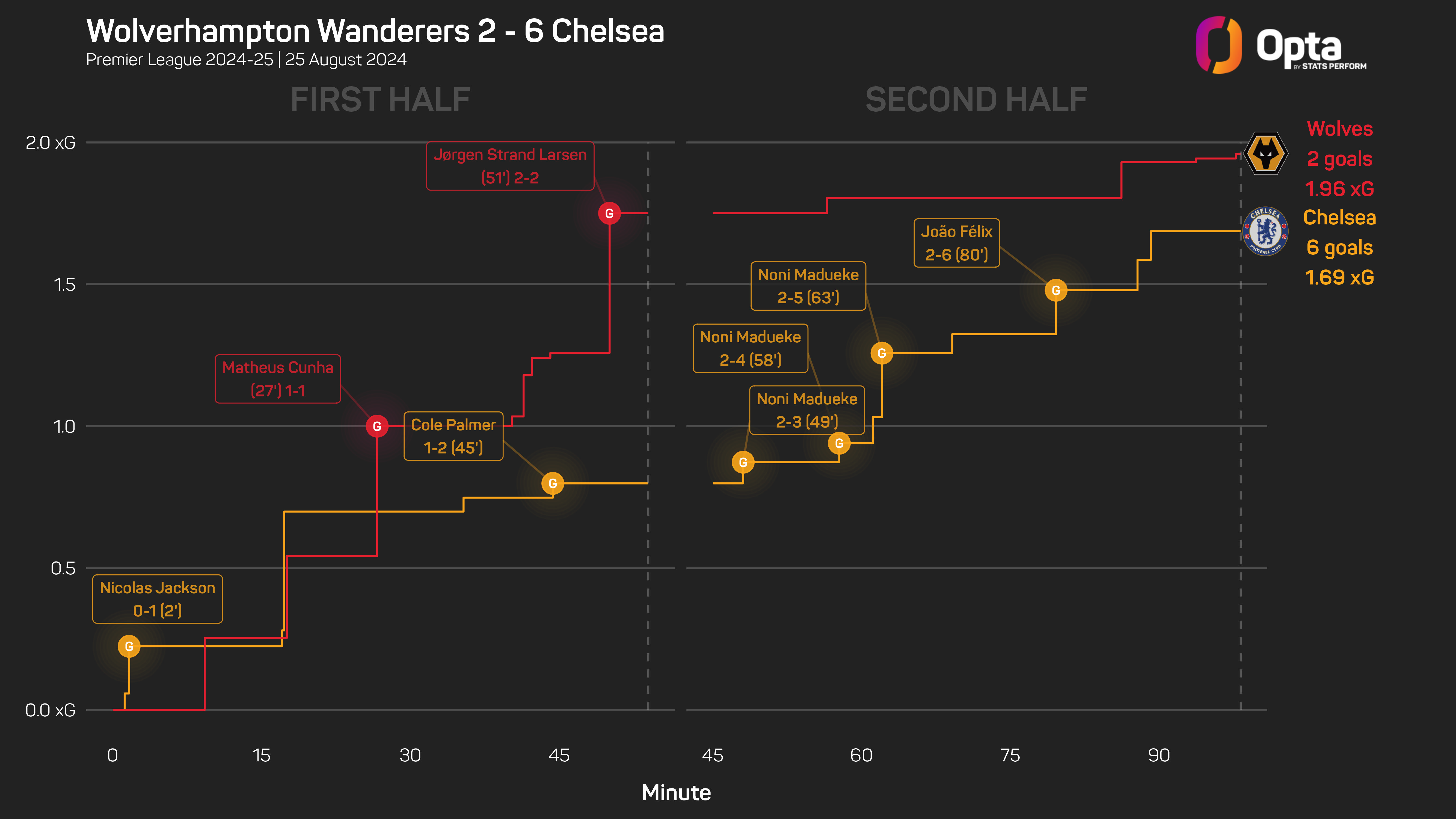 Chelsea's win at Molineux was one of just two games in the Premier League on matchday two where the victors lost the xG battle.