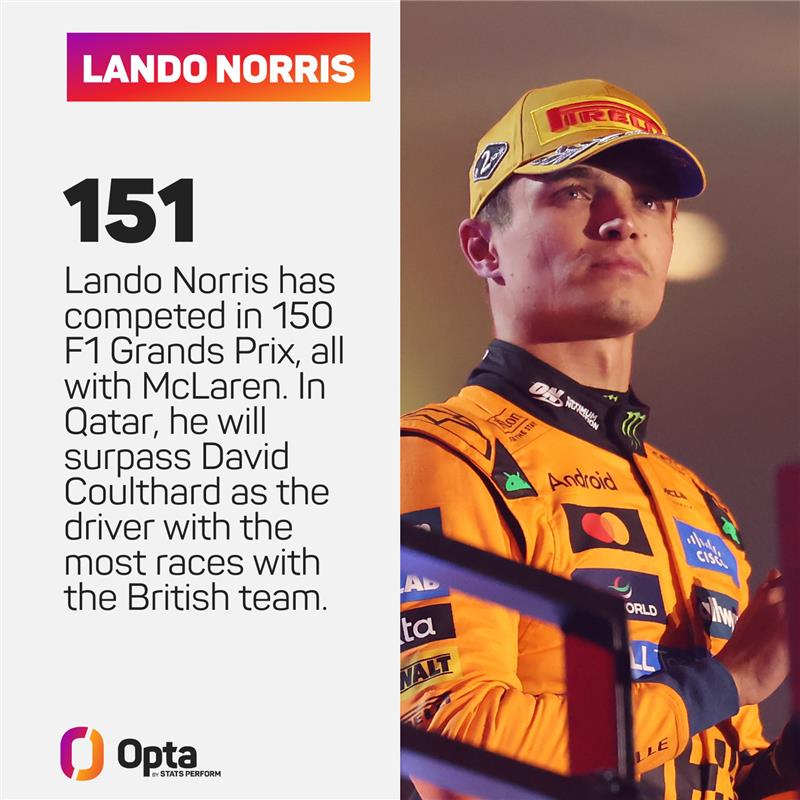 He has also competed in 150 F1 Grands Prix, all with McLaren. In Qatar, the Englishman will surpass David Coulthard as the driver with the most races with the British team.