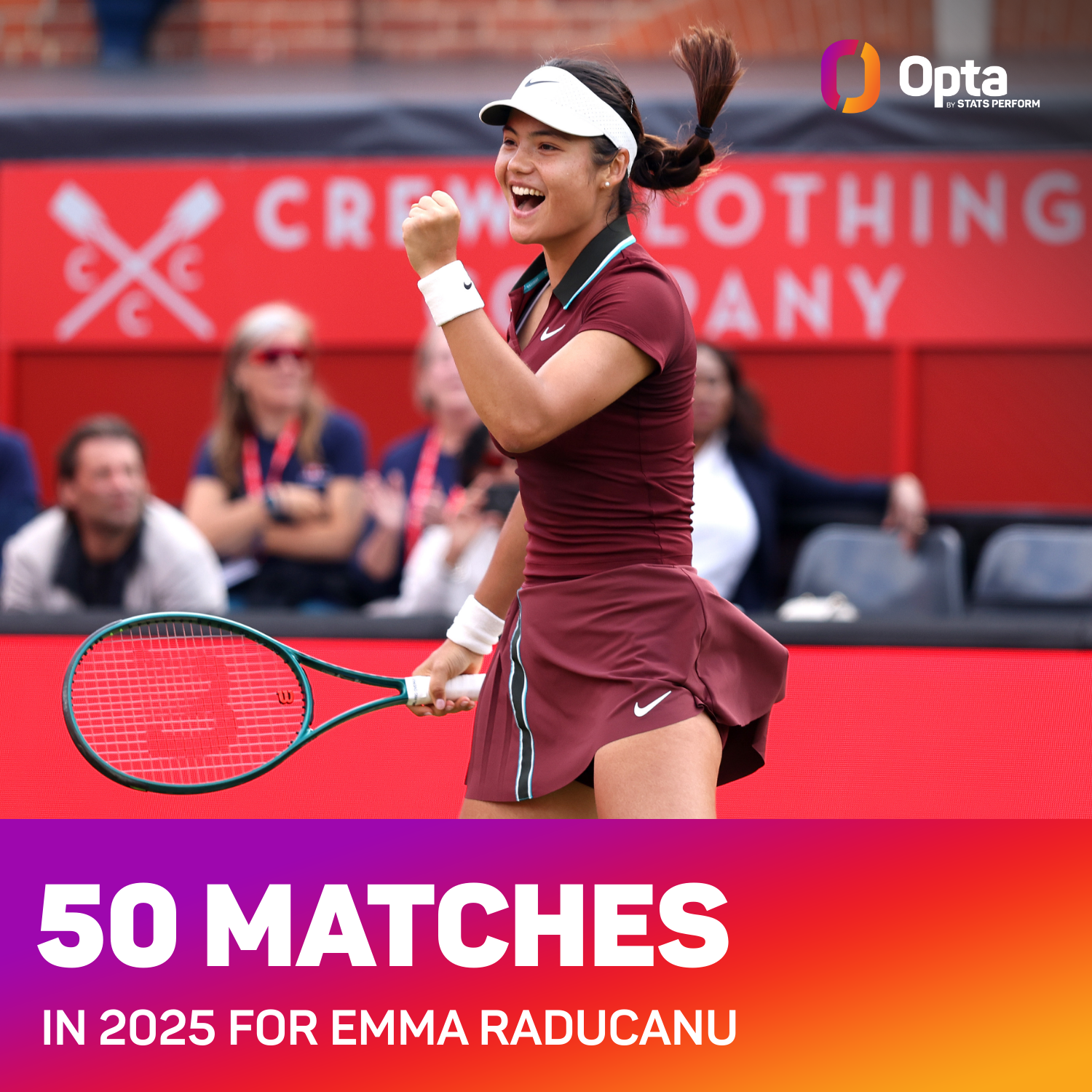 Raducanu finished the 2025 campaign as the world number 29 after playing 50 matches throughout the calendar year, the most she has managed in her entire career.