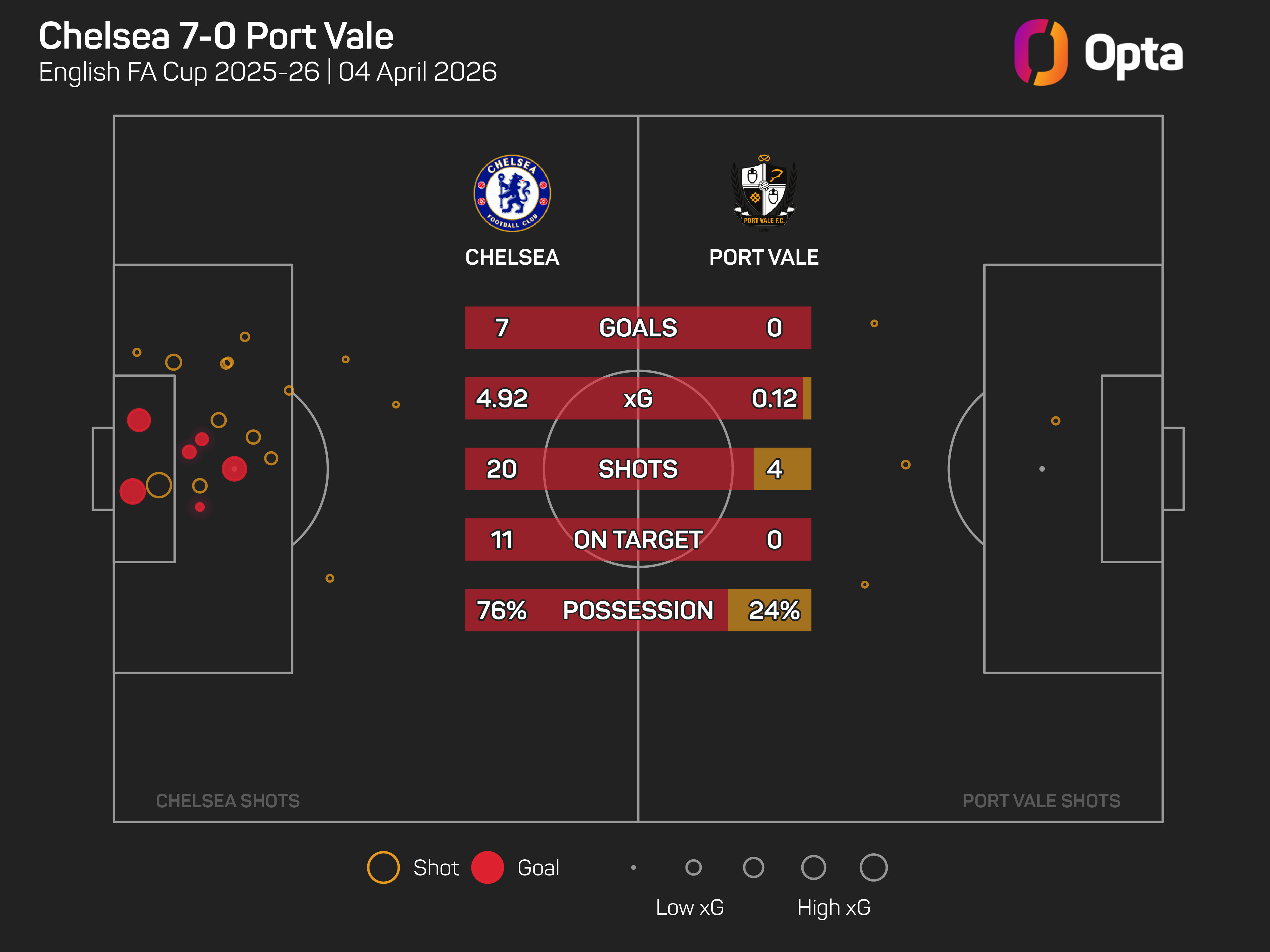 Chelsea have only recorded a larger margin of victory in the FA Cup on one previous occasion, beating Worksop Town 9-1 in 1908, while it was Port Vale's heaviest-ever defeat in the FA Cup proper.