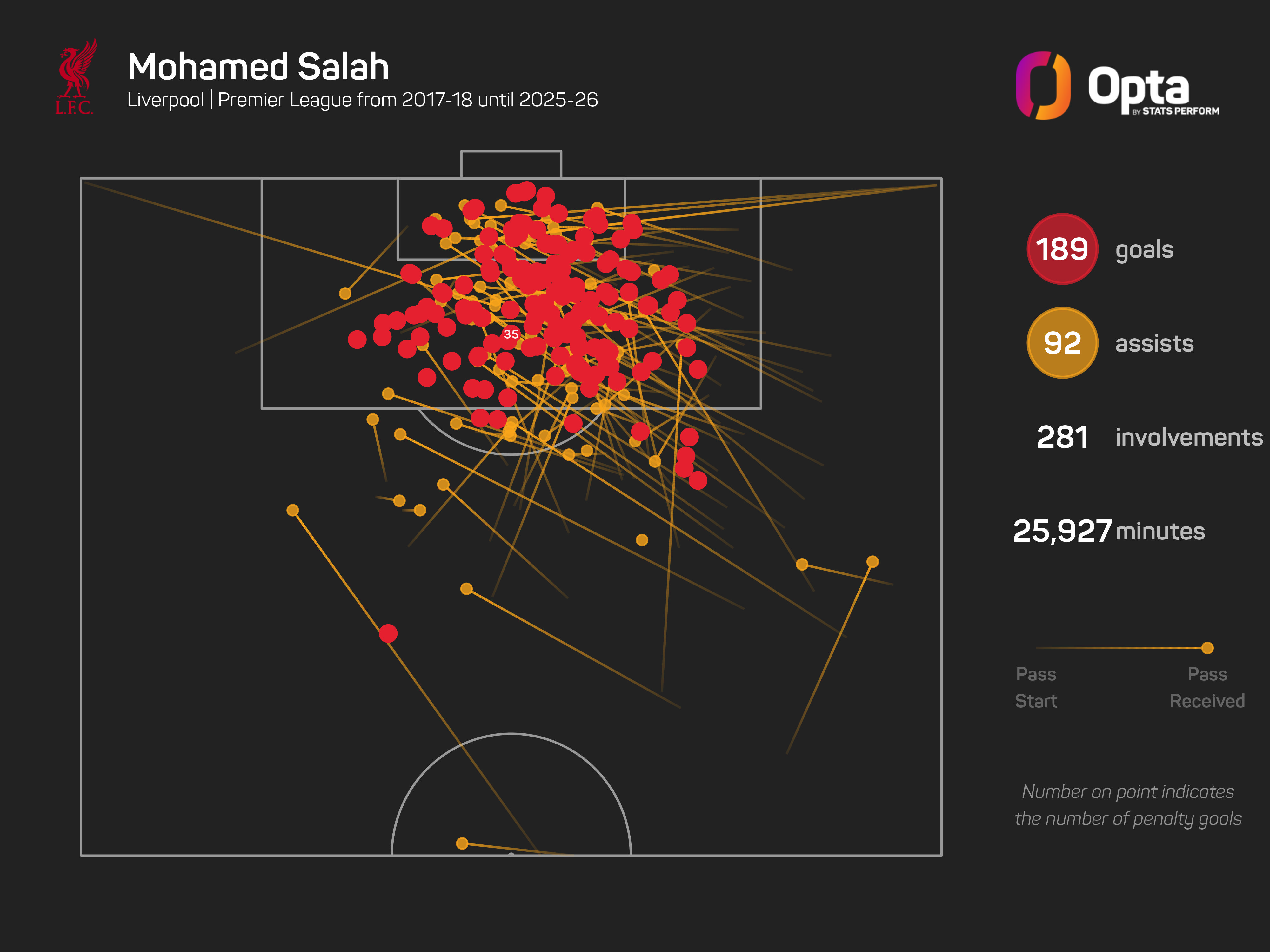 "While many will argue about the merits of players like Cristiano Ronaldo, Eden Hazard, Gianfranco Zola, Dennis Bergkamp or Eric Cantona, none of them produced the same devastating numbers as consistently, season-after-season, as the Egyptian.