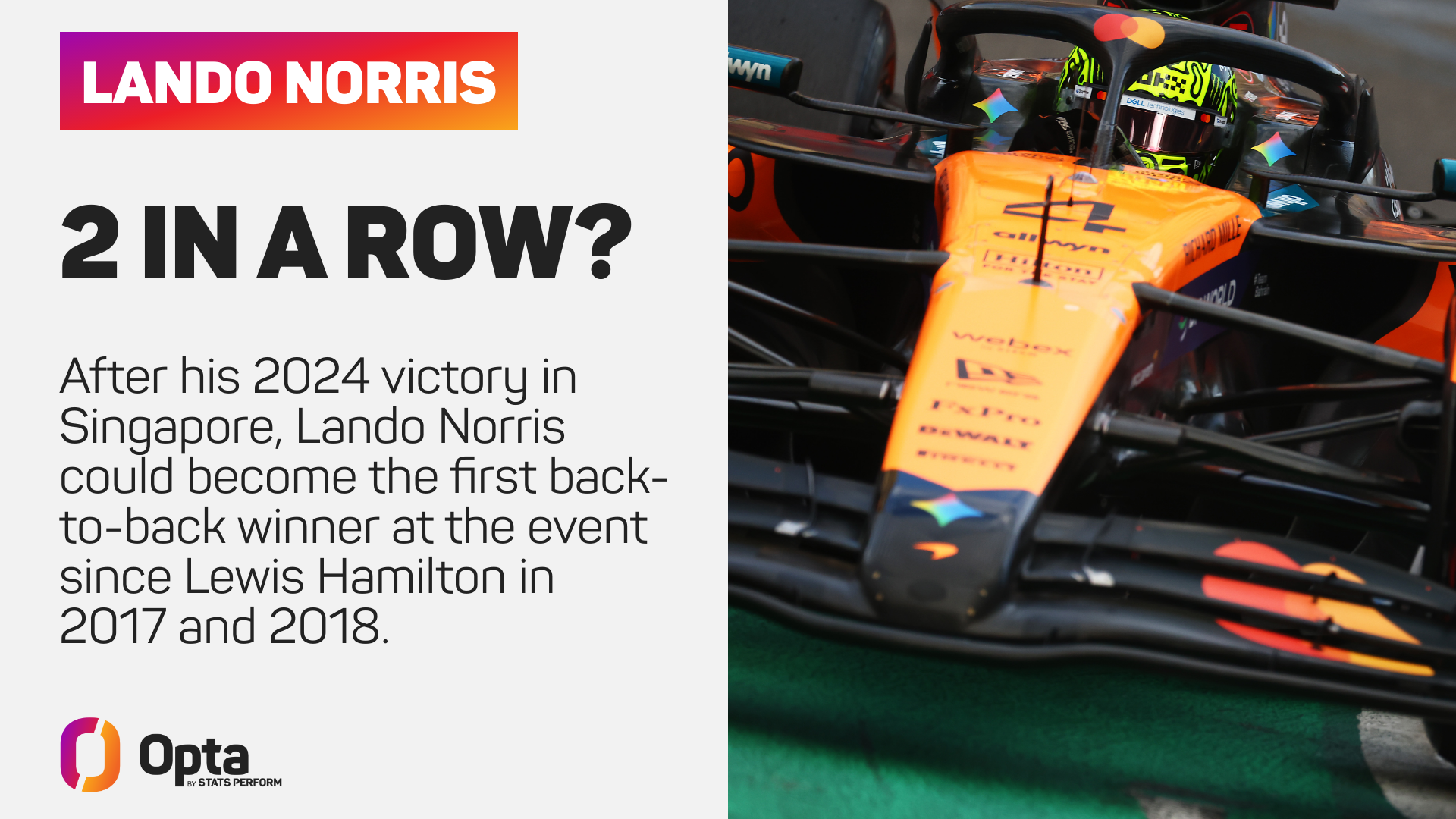 Norris won the last edition of the Singapore Grand Prix in 2024, and he and could become the first driver to repeat victory at Marina Bay since Lewis Hamilton in 2017 and 2018.
