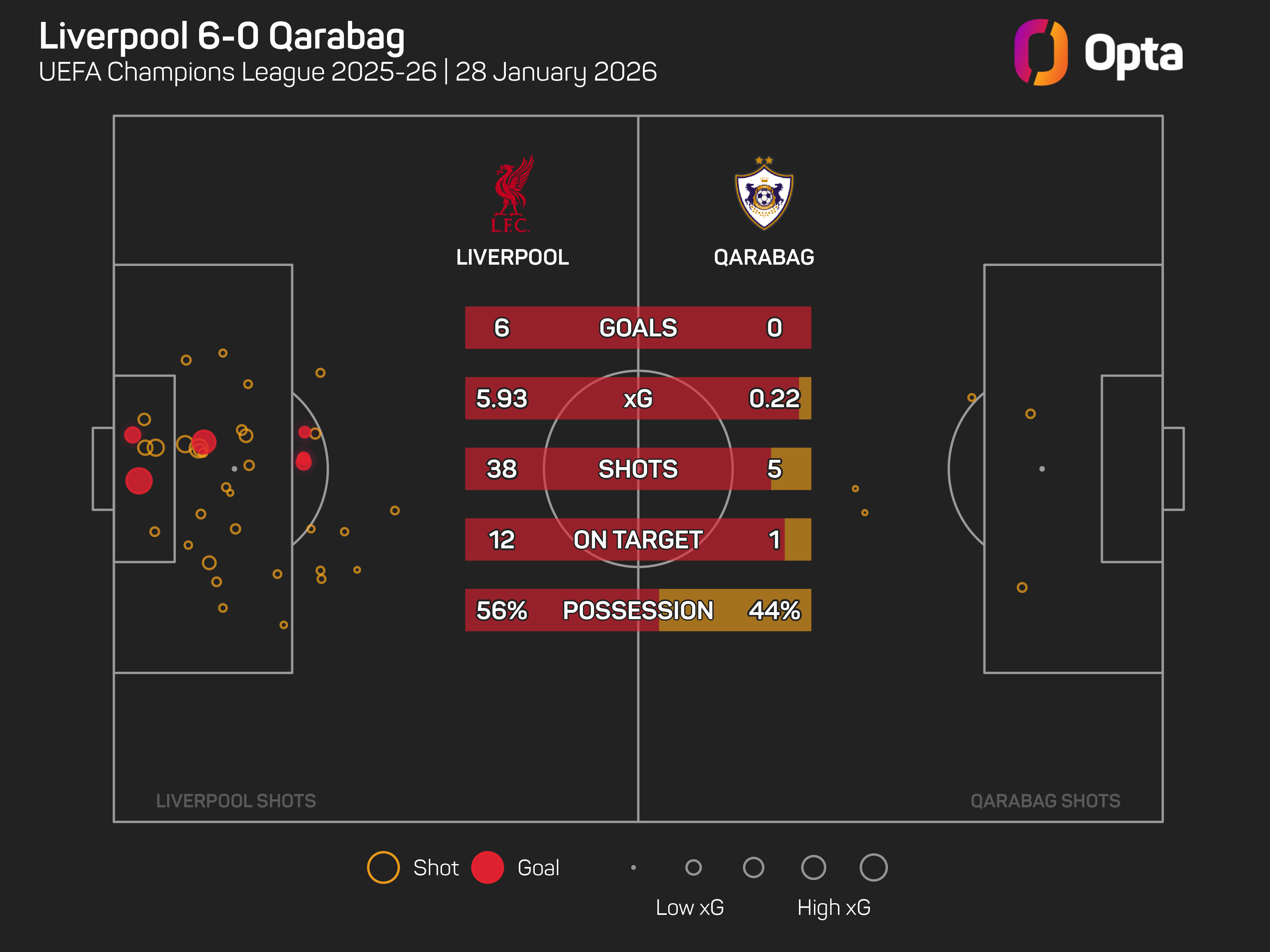 They thrashed Qarabag 6-0, with Salah on the scoresheet, along with Alexis Mac Allister, Florian Wirtz, Hugo Ekitike and Federico Chiesa.