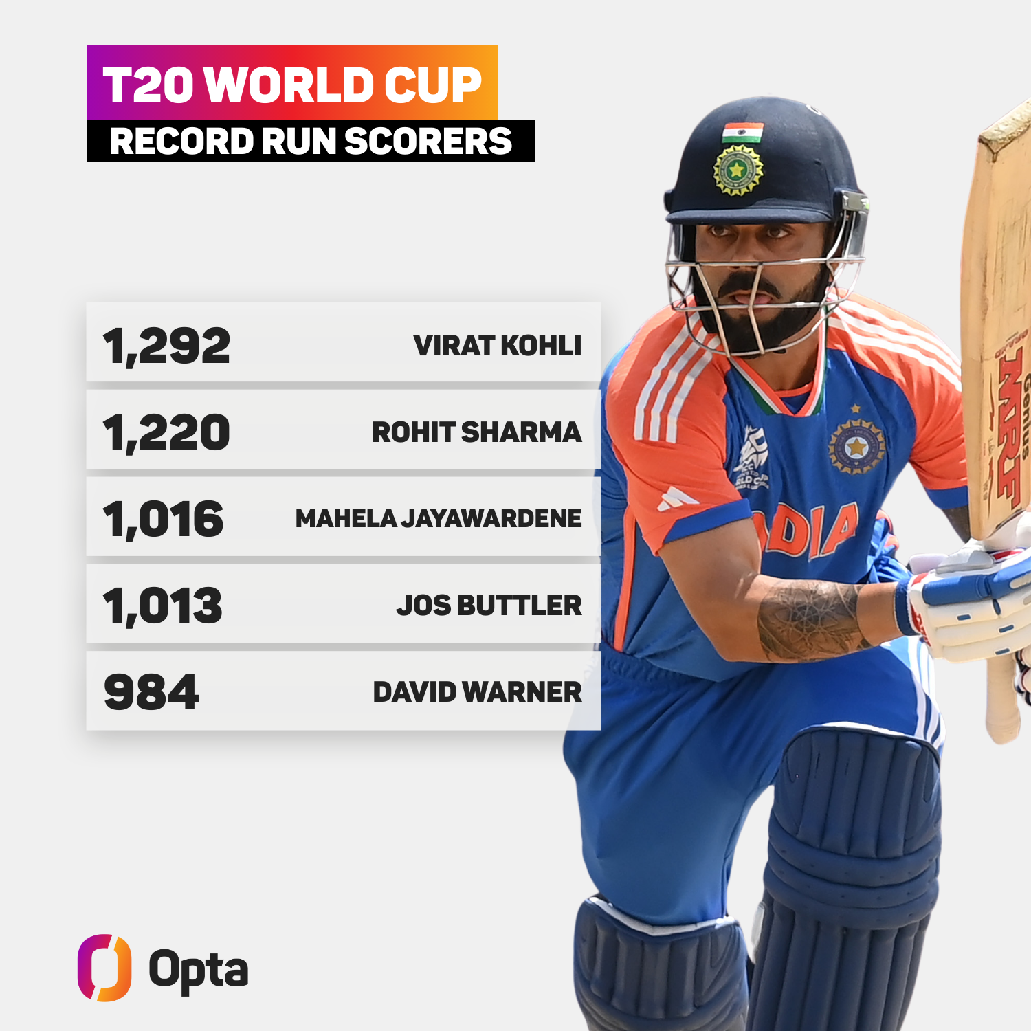 England also hold the record for the highest successful run chase in the tournament, reaching their target of 230 against South Africa at the Wankhede Stadium in Mumbai in 2016. That was also the last time both teams scored 200+ runs in a T20 World Cup match, and captain Harry Brook has said he expects many run records to tumble in this year's tournament.
