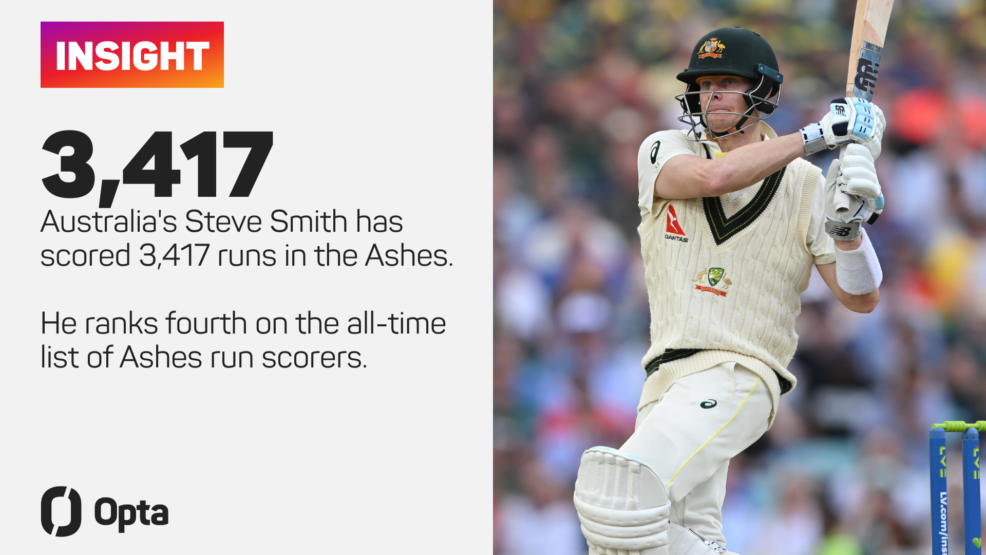 With 3,417 runs against England to his name, Smith will also be aiming to overtake Allan Border (3,548) and Jack Hobbs (3,636) to move into second in the all-time list for Ashes runs, behind Don Bradman (5,028).