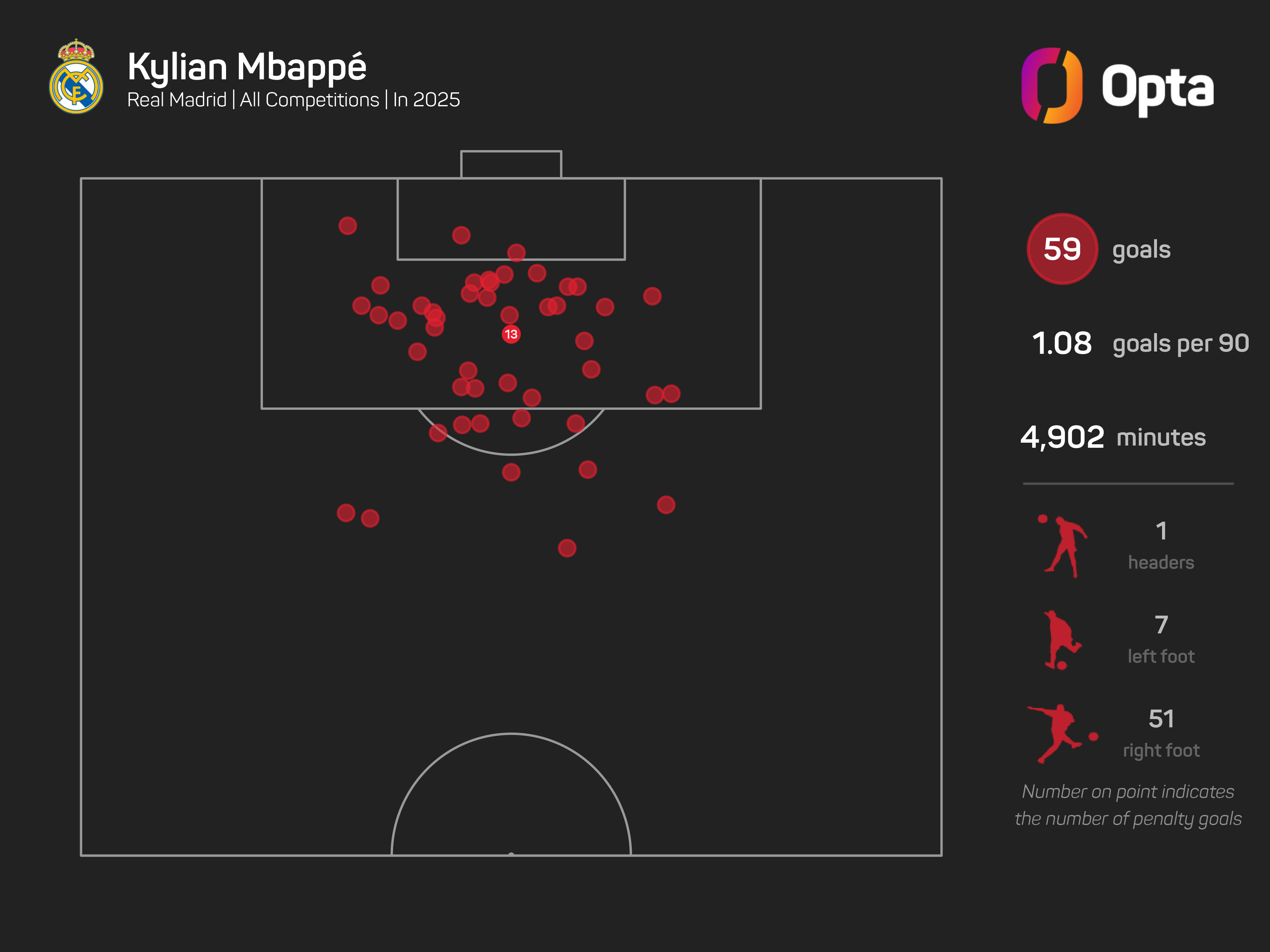 He also became the highest-scoring Madrid player in their debut season, netting 43 times in 2024-25 in all competitions.