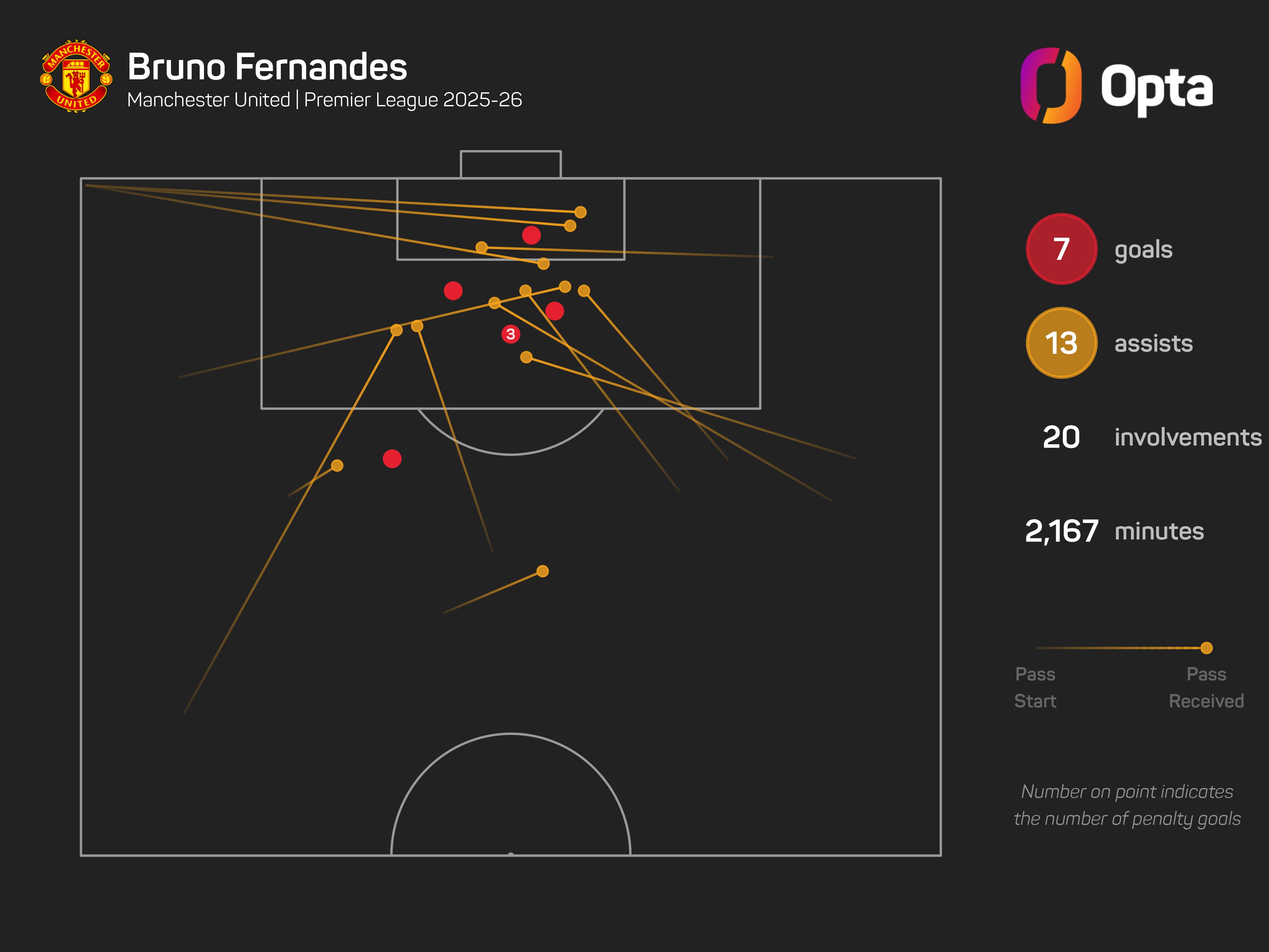 Fernandes has 13 Premier League assists this season, the most by a Man Utd player in a single campaign since Antonio Valencia in 2011-12 (also 13).