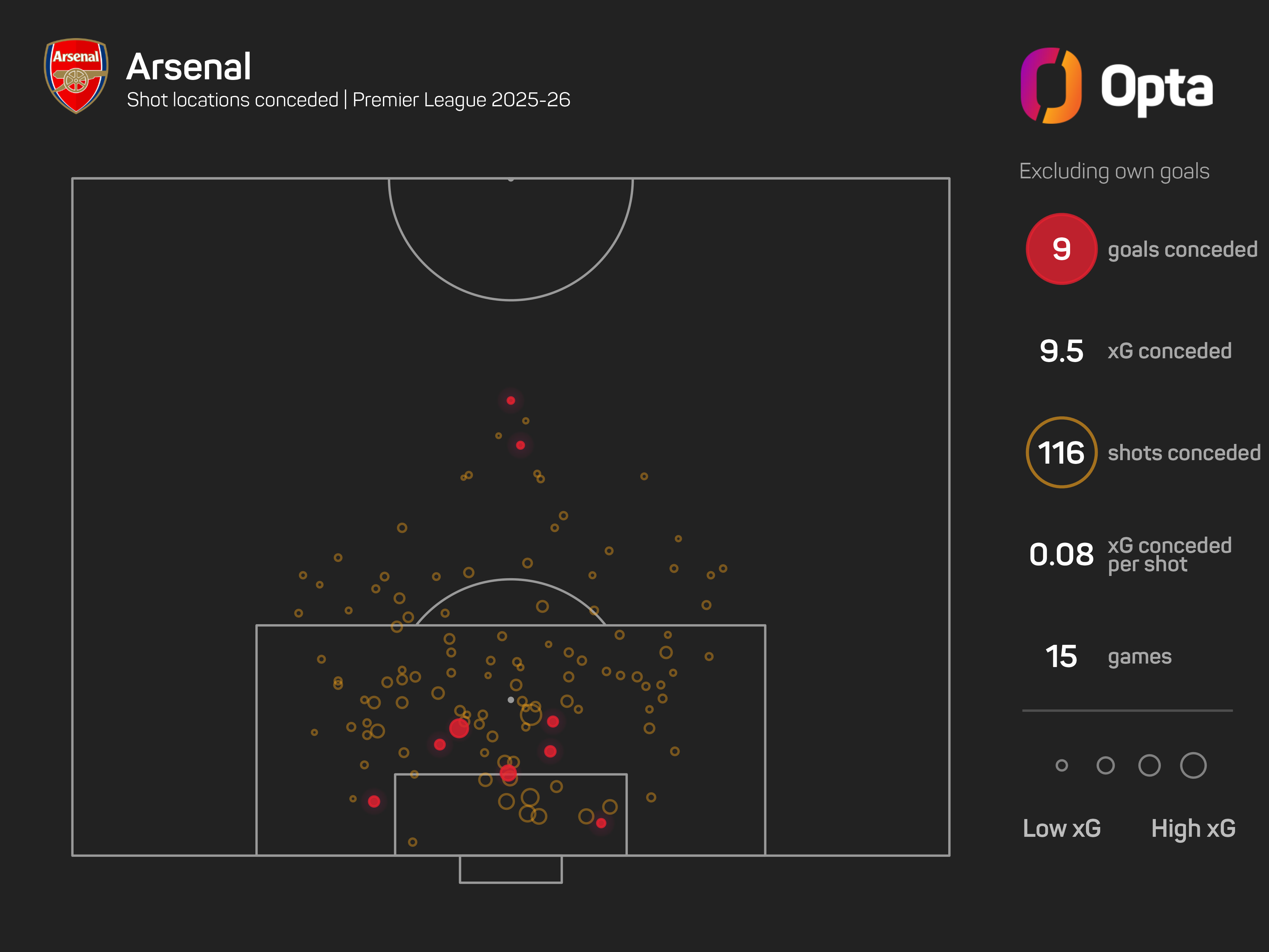 And even though they still have the best defence in the Premier League this season with only nine goals conceded, Arsenal have shipped six goals in their last five league games, double the amount they did in their first 10 this term.