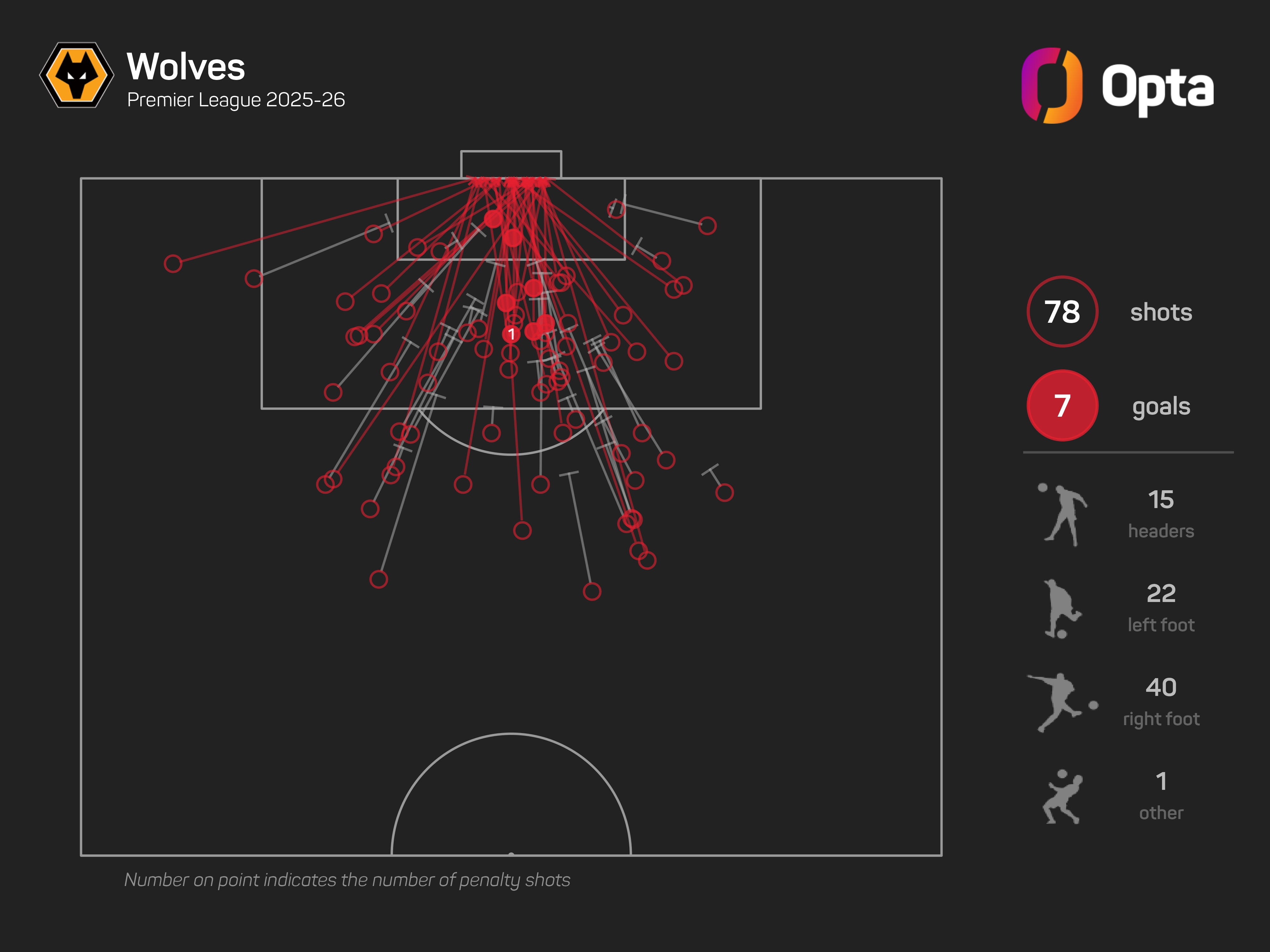 Meanwhile, Wolves' two points are a joint-low after 15 games in top-flight history, level with the Blades from 2020-21.
