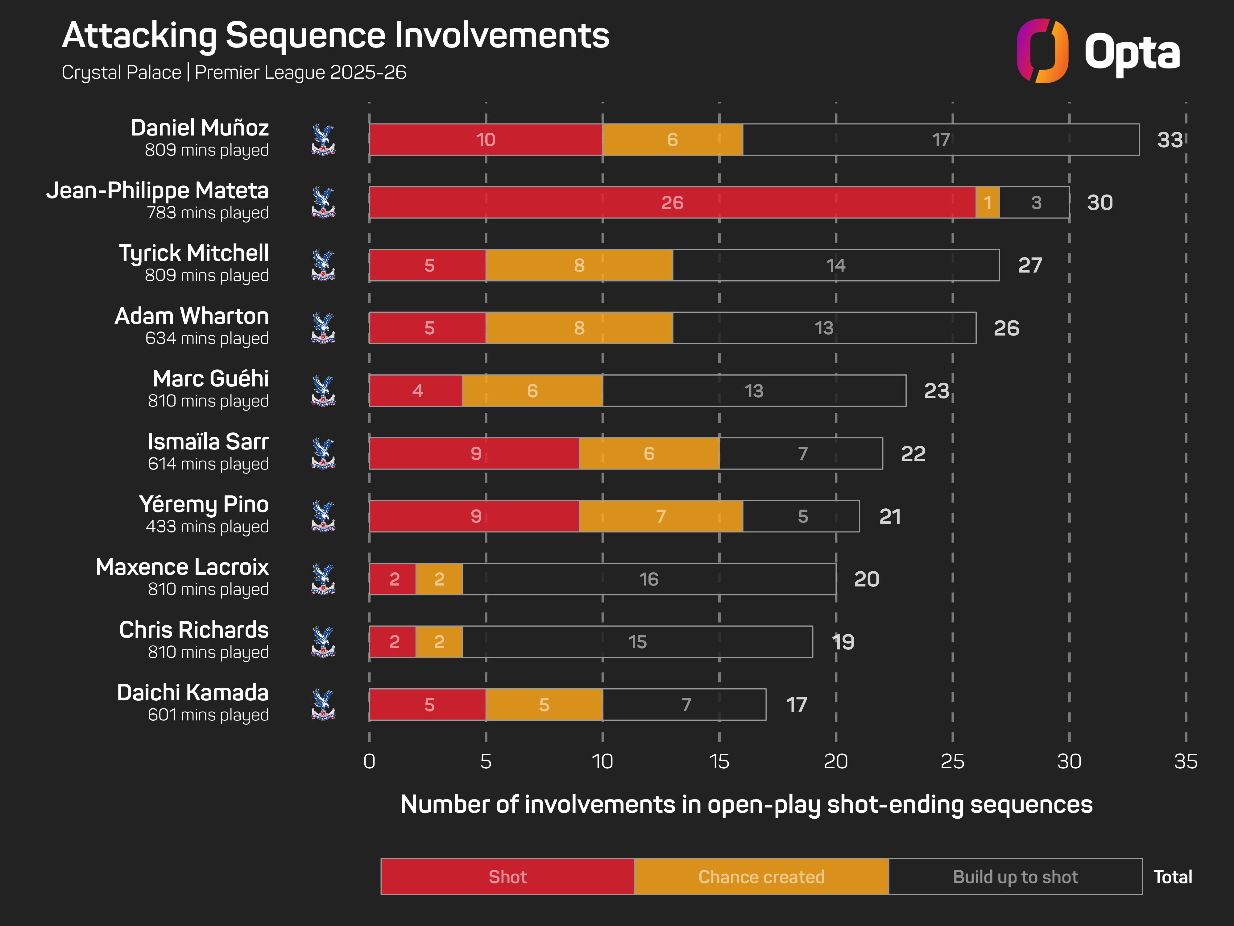 Sarr has also created 53 chances in that time, which among current Palace players, trails only wing-backs Tyrick Mitchell and Daniel Munoz.