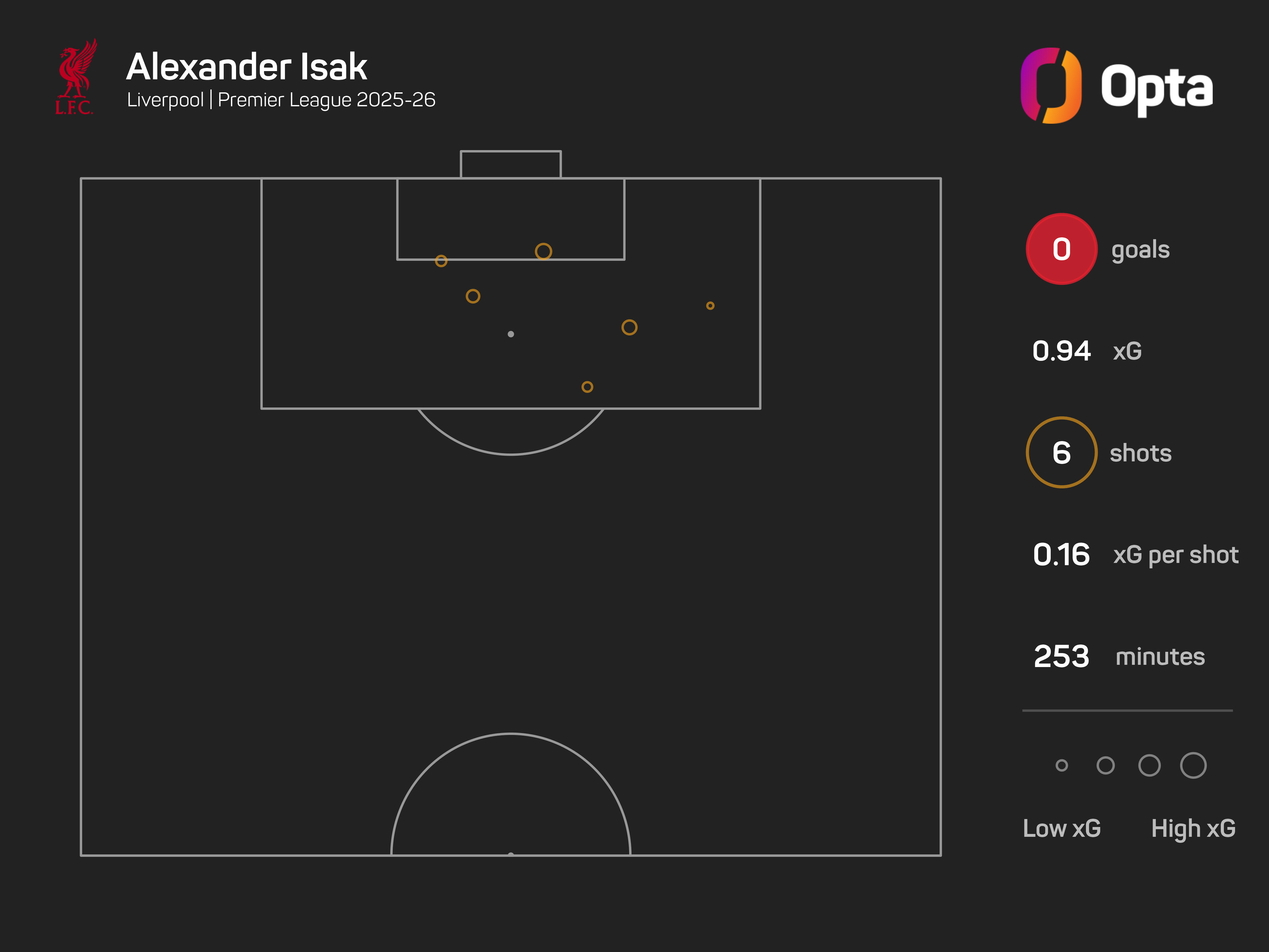 Those efforts have come from an expected goals (xG) total of 7.89, however, meaning he has the worst xG underperformance of any Premier League player this term, scoring 2.89 goals fewer than expected, based on the quality of his chances.