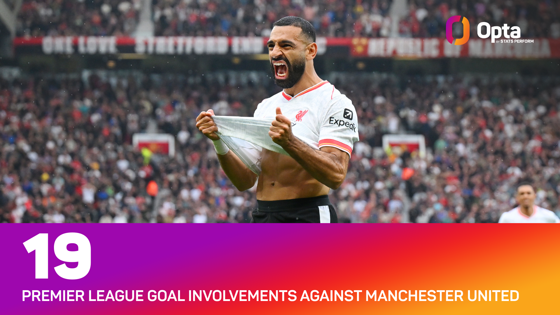 That is because Salah has more goals (13) and goal involvements (19 – 13 goals, six assists) against the Red Devils than any other player in the history of the Premier League.