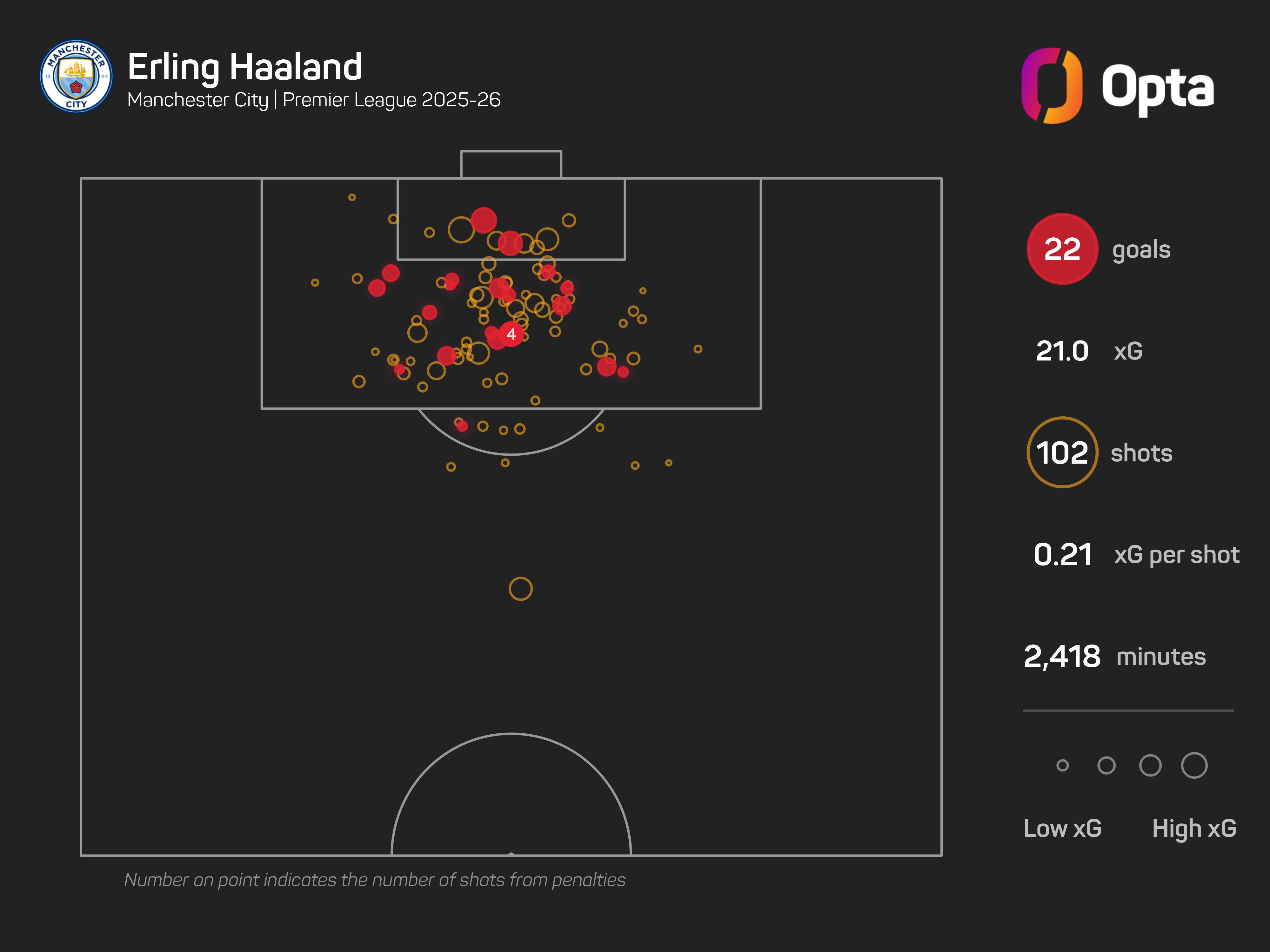 Indeed, before Christmas, he was averaging 0.89 non-penalty expected goals per 90 in the 2025-26 Premier League; since, this has dropped to 0.32.