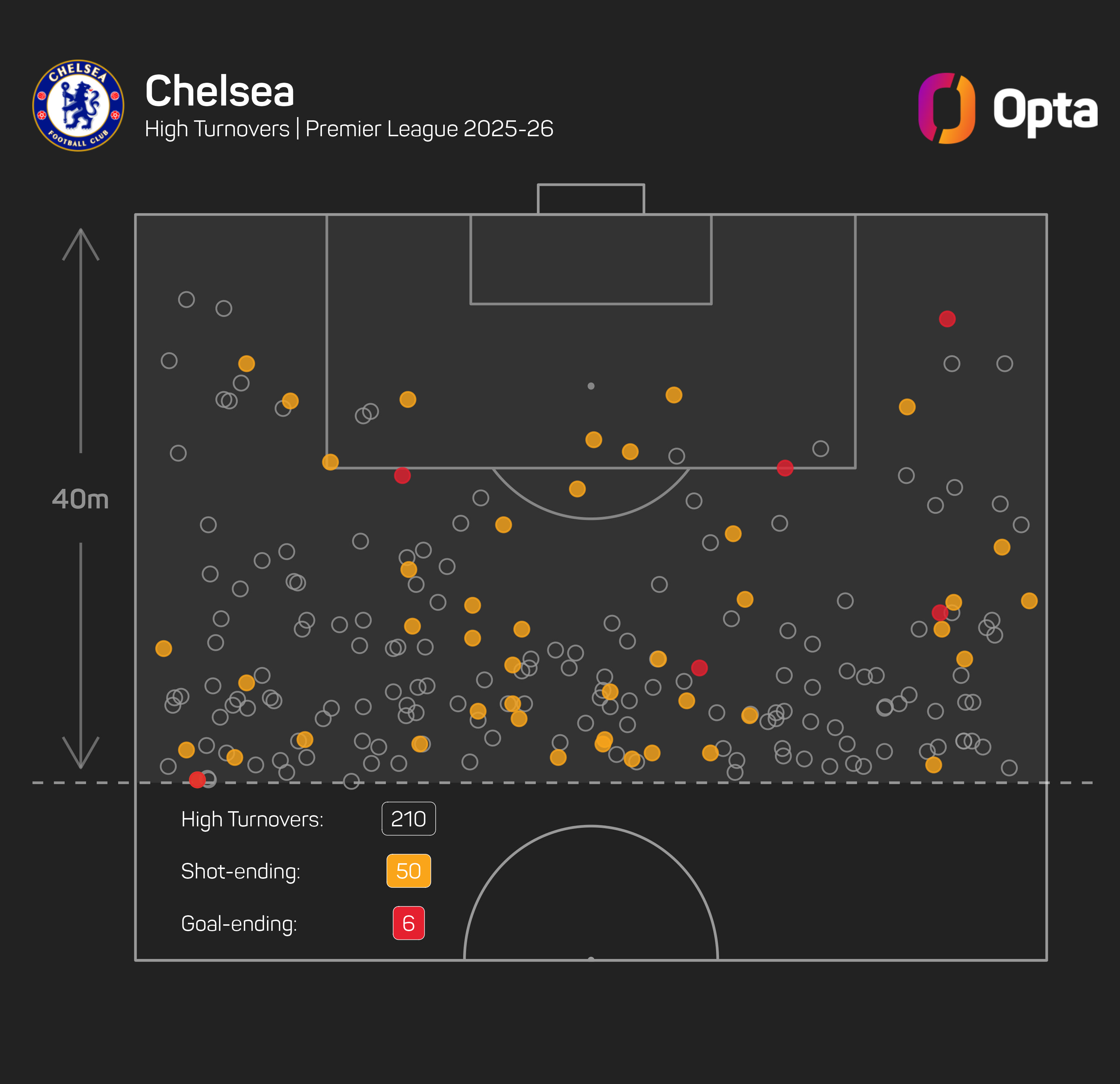 City (51) and Chelsea (50) have had more shots following high turnovers than any other sides in the Premier League this season.