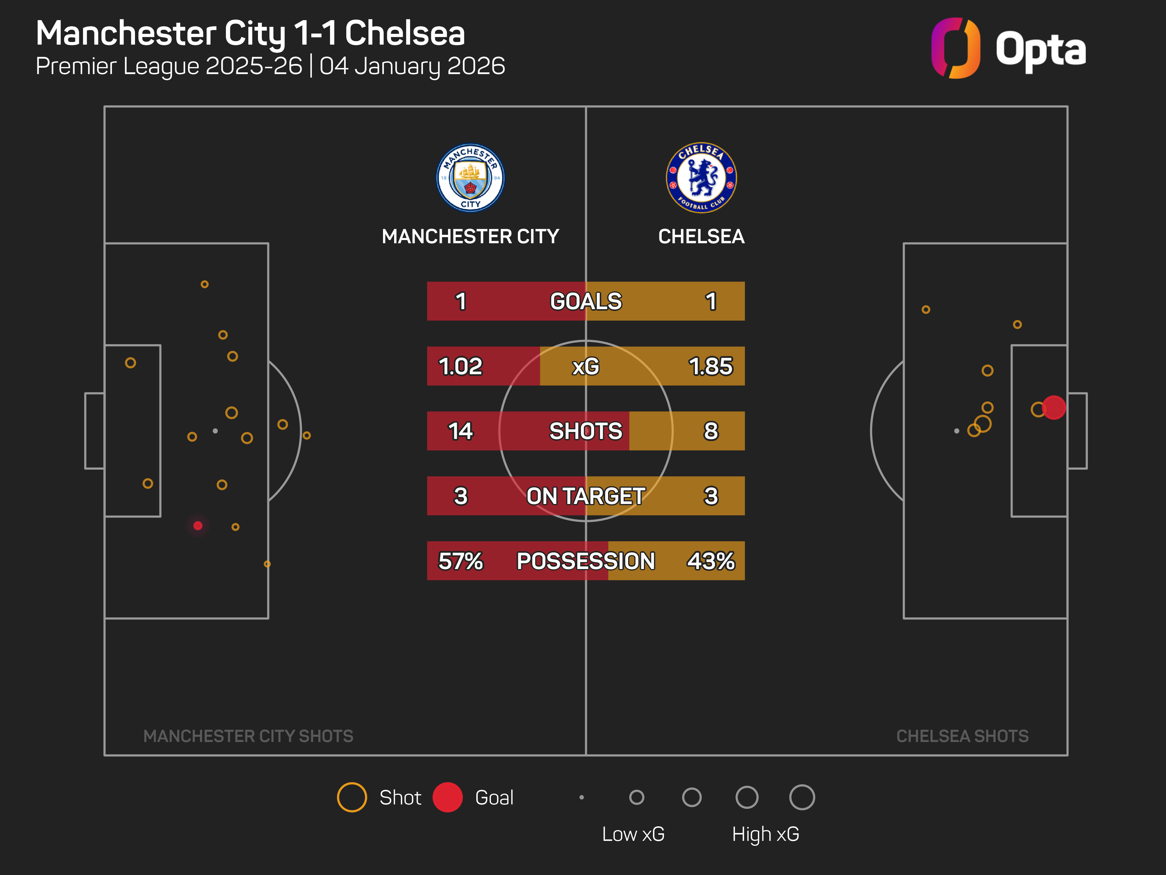 City, on the other hand, have won four of their last five Premier League away games against Chelsea (D1), as many as they had in their previous 26 league visits to Stamford Bridge (D8 L14).