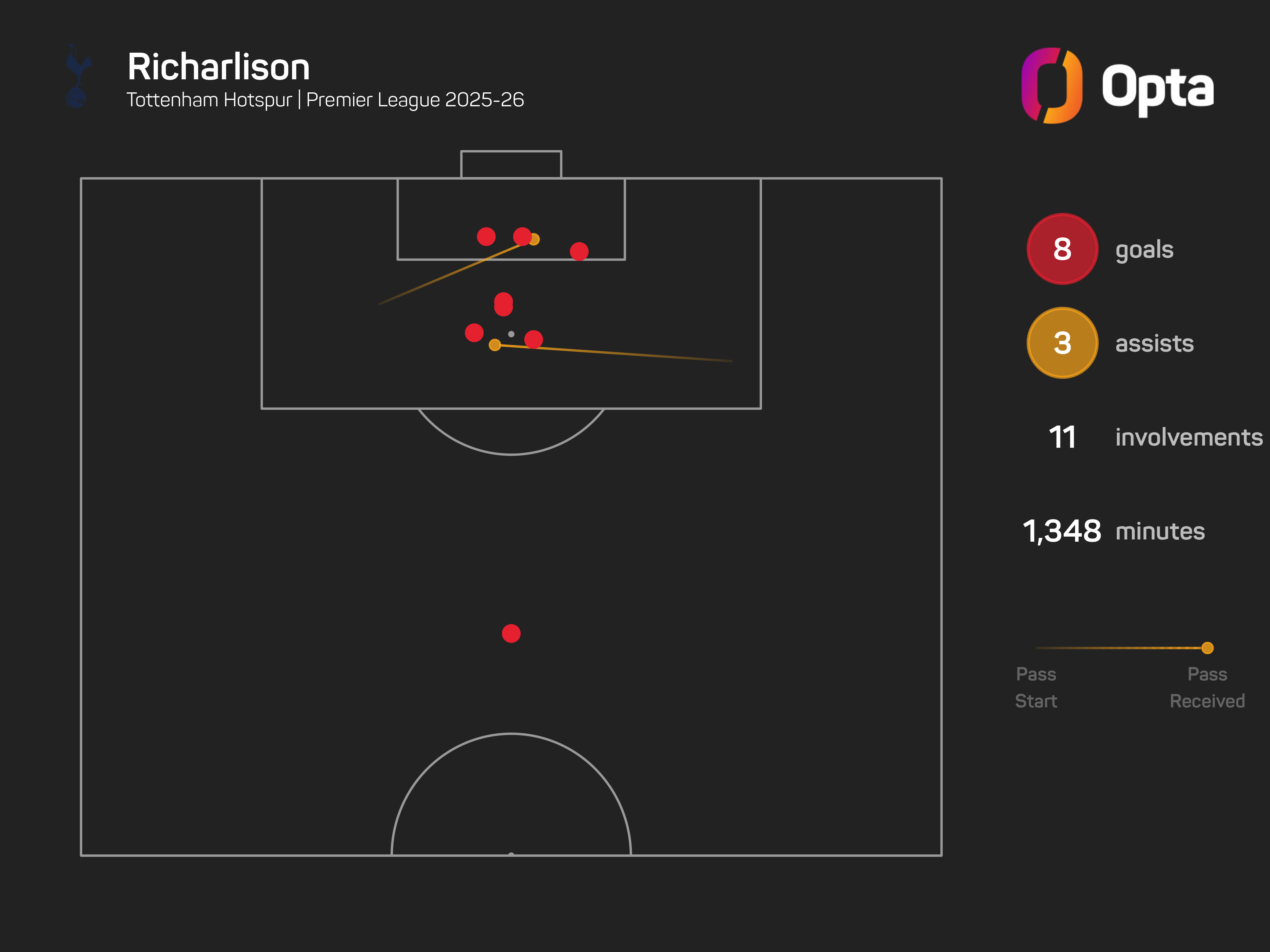 He is not only Spurs' leading scorer this term (nine goals in all competitions), but his 13 goal involvements also rank four clear of any of his club-mates.