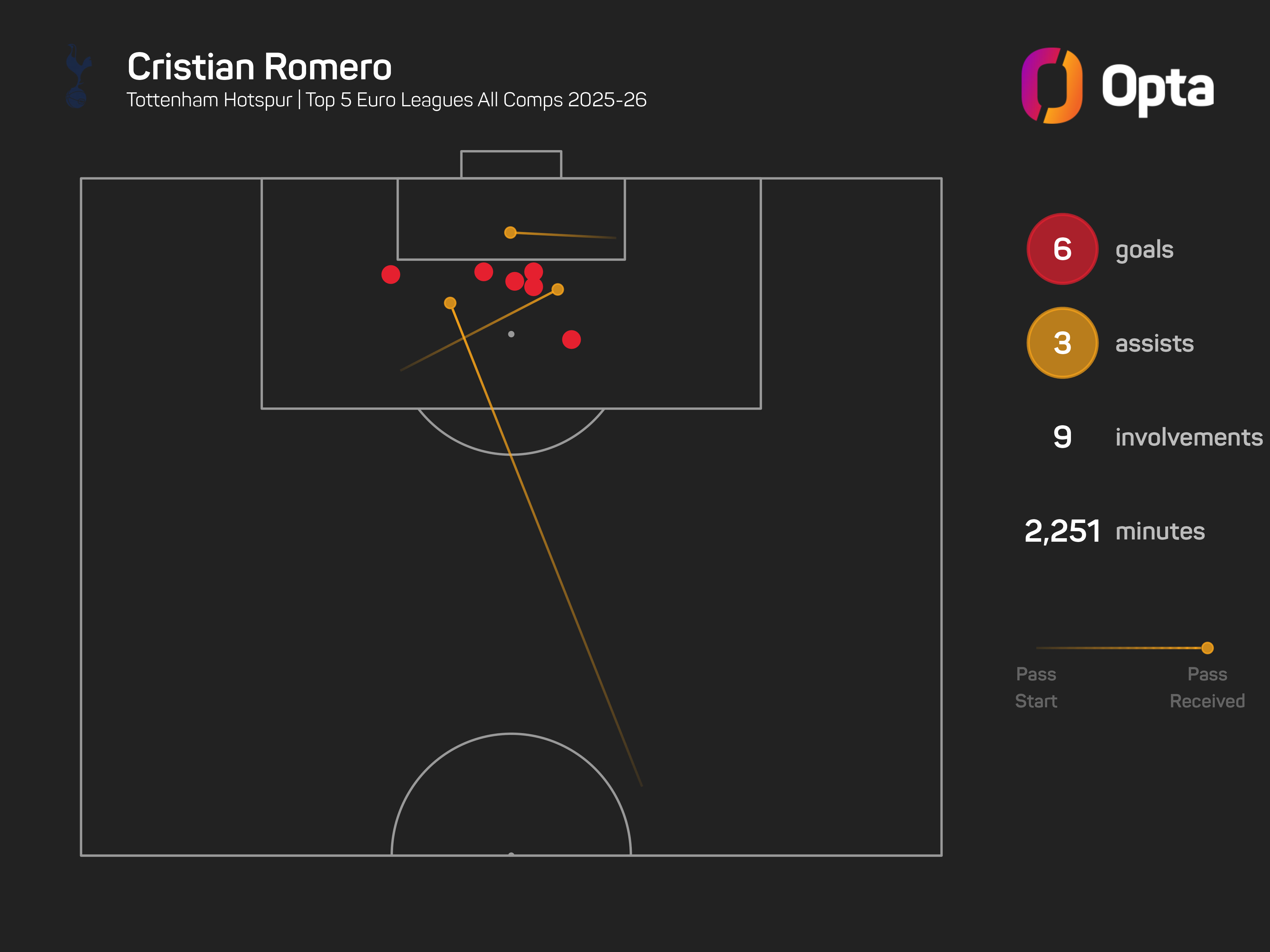 Romero assisted Randal Kolo Muani's opening goal against Eintracht Frankfurt in the Champions League last time out, and his knack of popping up with goal involvements has been a major boost for Frank's men this season.