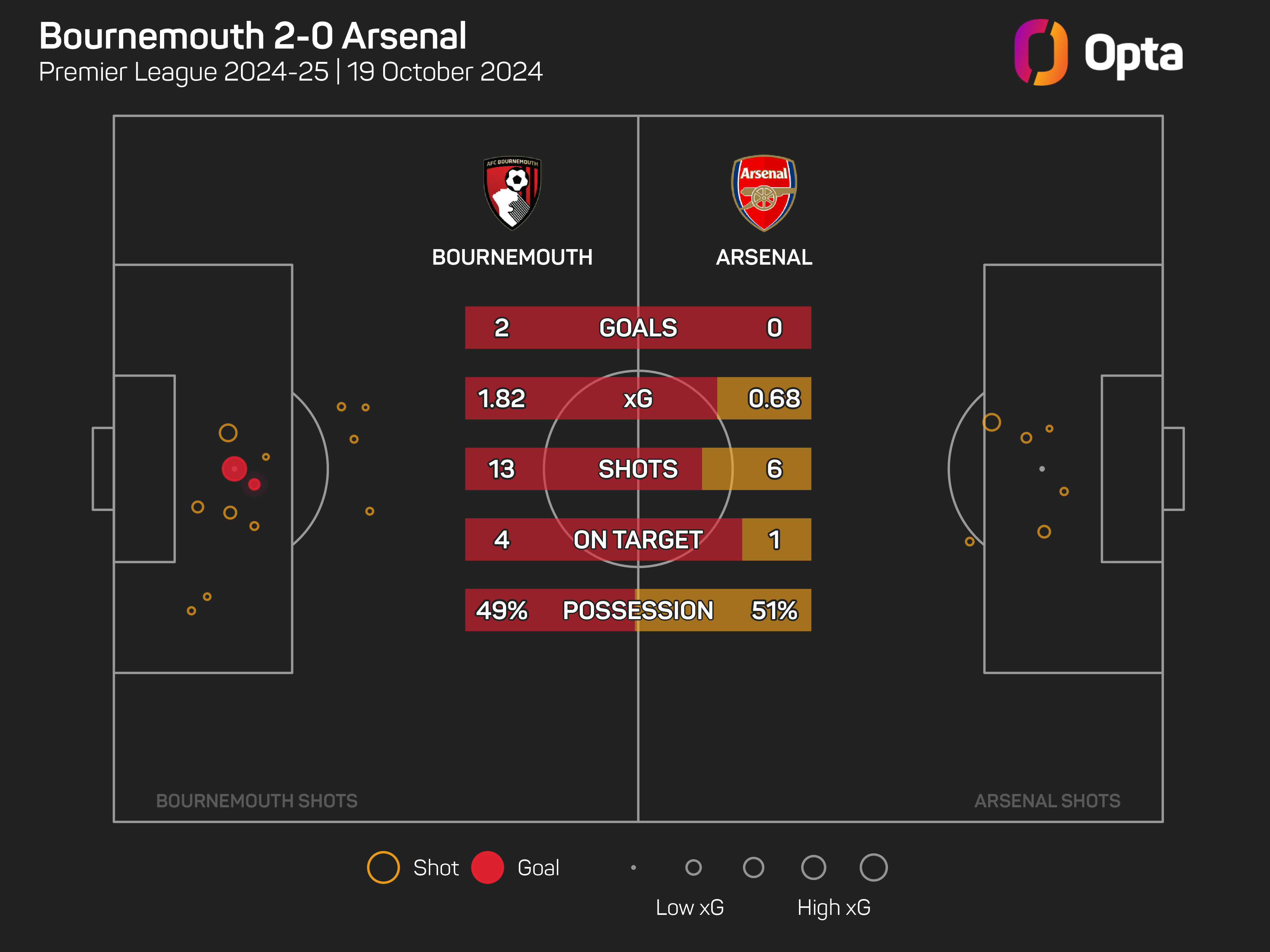 However, Arsenal were not top of the pile going into either of those matchups, and Bournemouth have lost 12 of their 13 Premier League games against sides starting the day top of the table, with the exception being a 2-1 home win over Man City in November 2024.