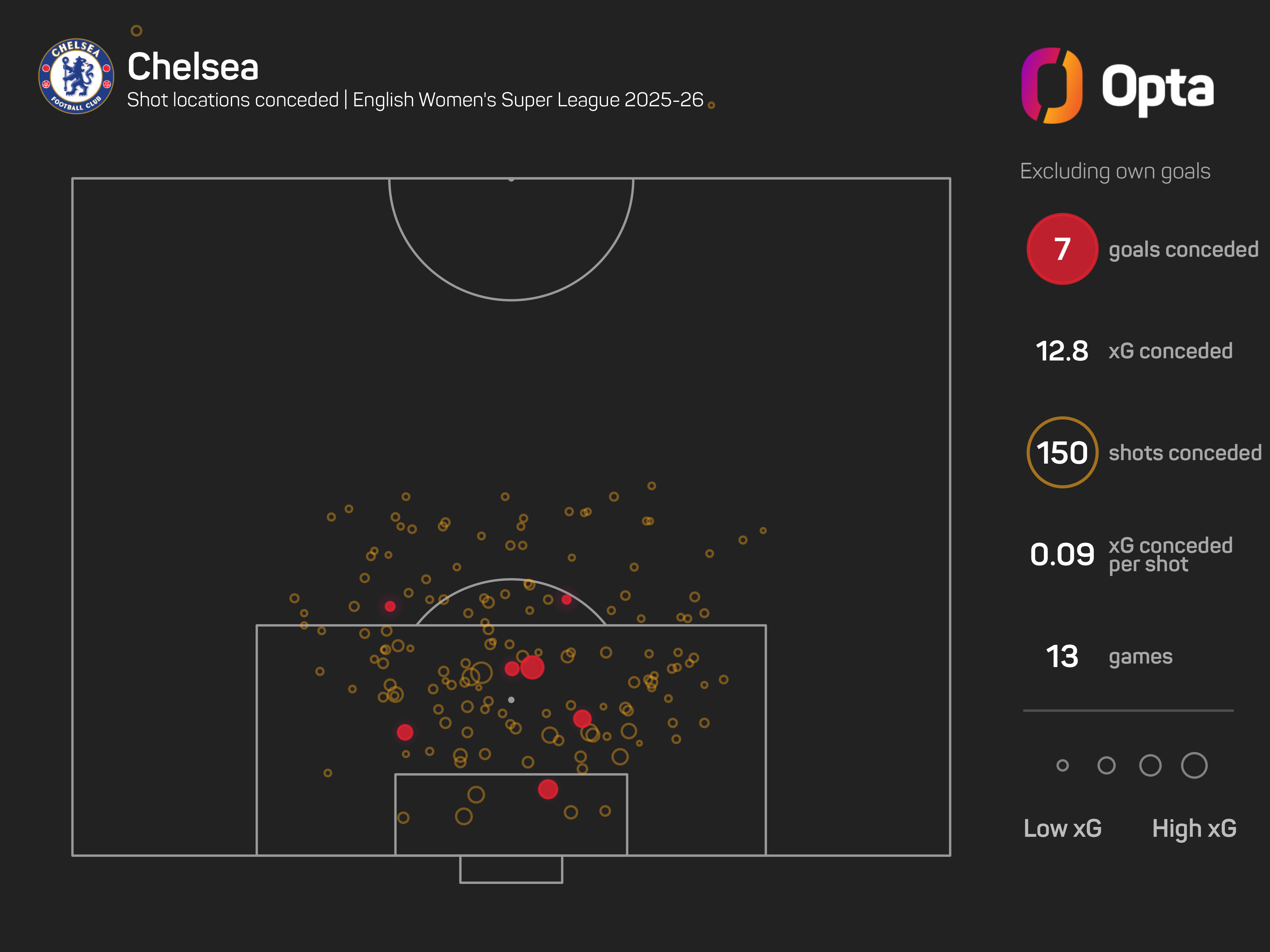 While they are struggling in front of goal, however, Chelsea still have the strongest defence in the league, having conceded just eight times despite facing 12.8 xGA. They have also kept a league-high six clean sheets, and Bompastor will be keen to build on that defensive solidity.