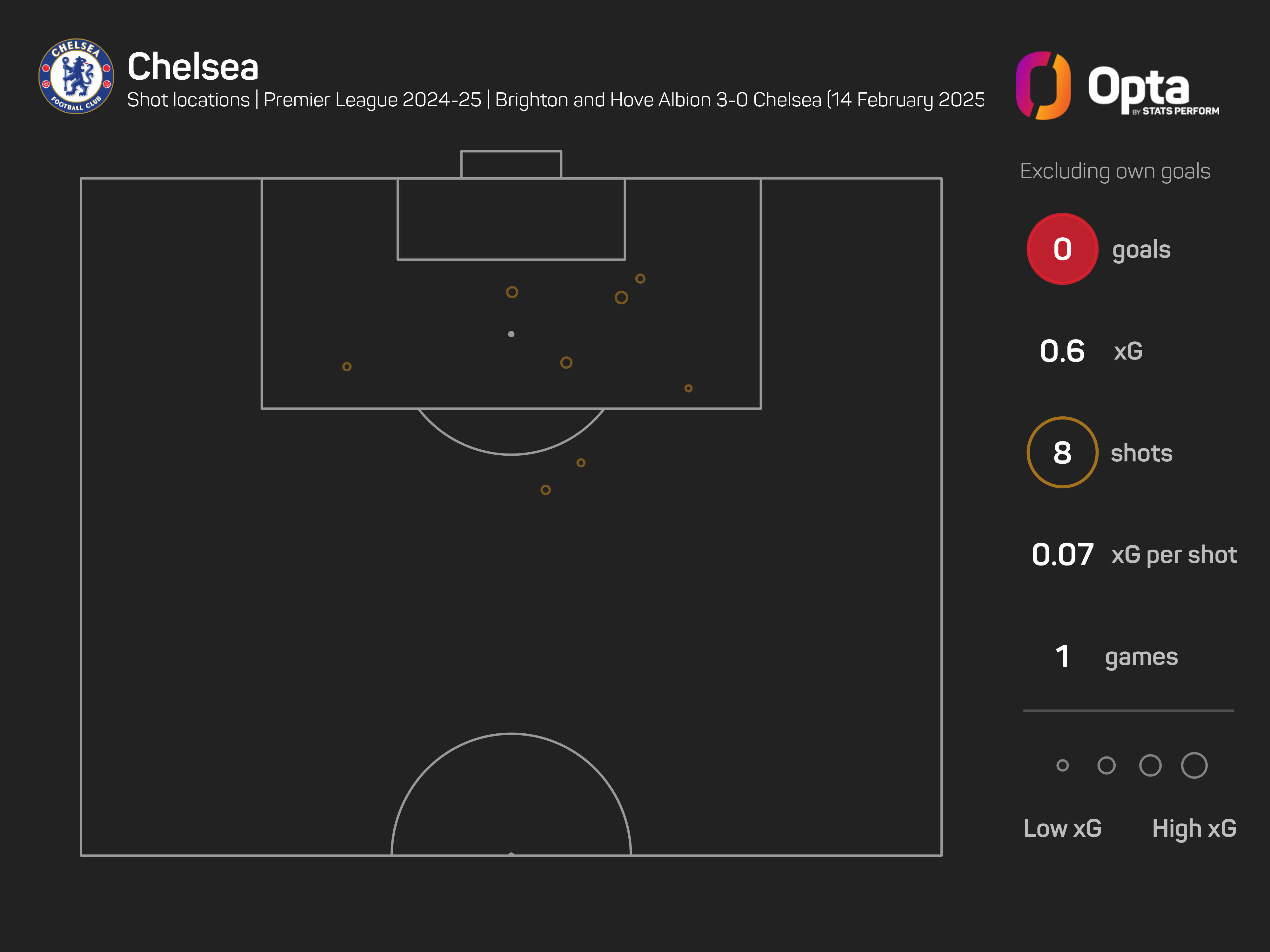 Despite averaging just under 70% possession, Chelsea failed to register a shot on target in a Premier League game for the first time since September 2021 (v Manchester City).